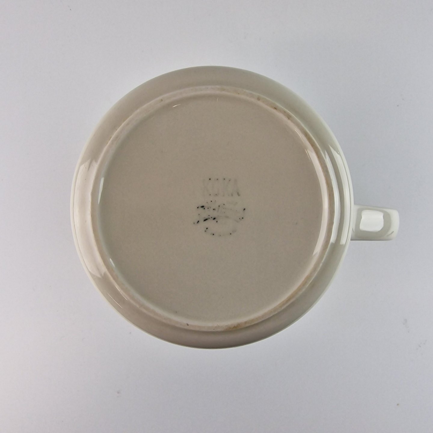 Blå Koka er af hvidt glaseret porcelæn med et bånd af mørk blå
