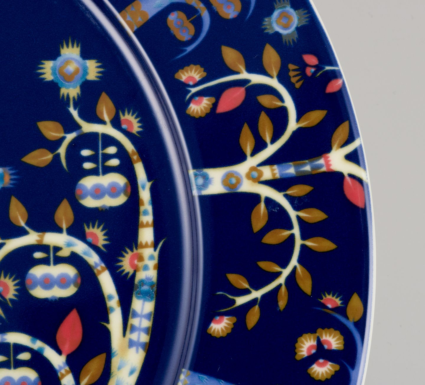 Iittala, Finland. Two large dinner plates/serving plates in porcelain with a motif of an owl on a branch.