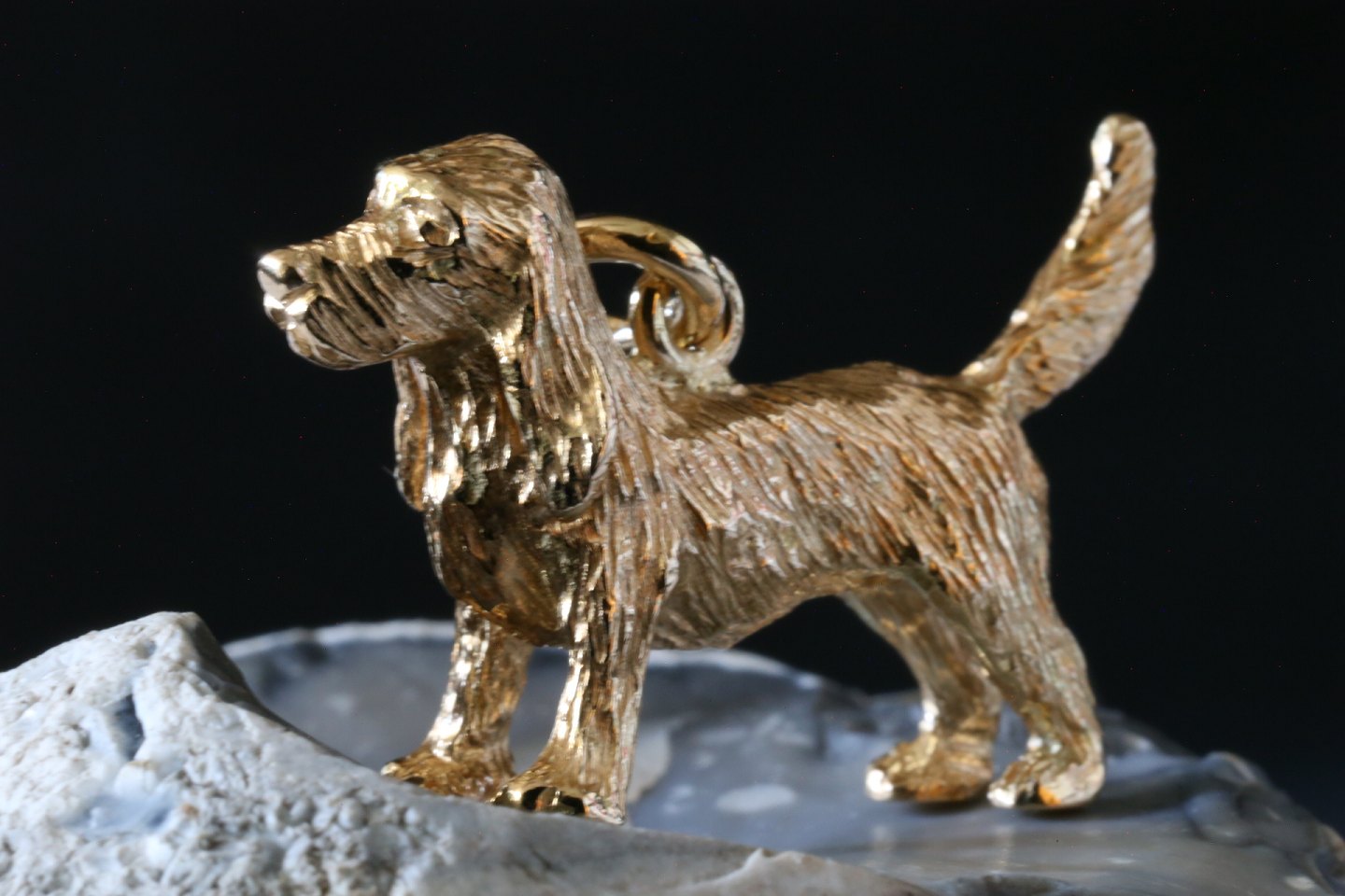 Hvis du elsker hunde, vil dette flotte og detaljerede vedhæng være lige noget for dig. Vedhænget er smedet meget detaljeret og livagtigt, med en sød hund med løftet hale. Vedhænget vil passe i en tynd guldkæde om halsen, og være det perfekte smykke til både hverdag og fest.