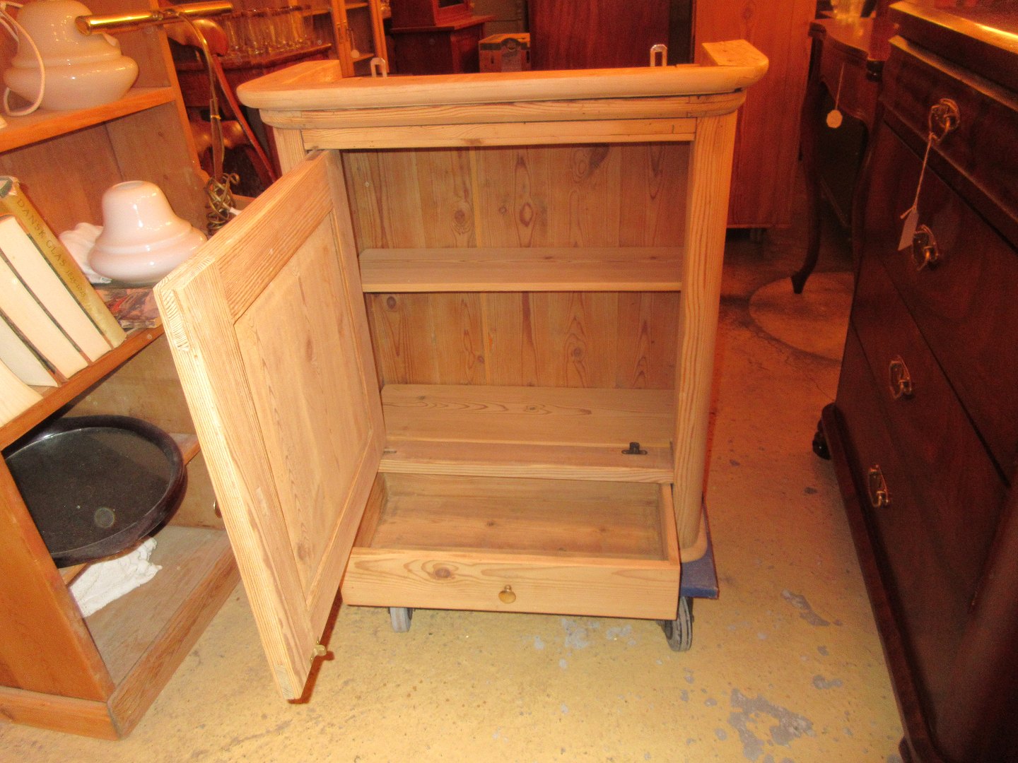 Hængeskab afsyret fyrretræ i fin stand restaureret med 1 låge 1 skuffe mål H 72 D 28 B 64 cm
