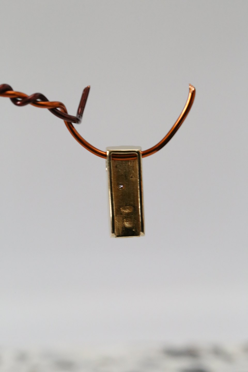 Et fint lille vedhæng, der med sit tidløse mønster vil passe til enhver kvinde, uanset alder. Den lille indlagte brillant giver vedhænget en overlegen finish, der understreger vedhængets unikke stil. Da vedhænget ikke er særlig stort, vil det være ideelt med en tynd guldkæde.