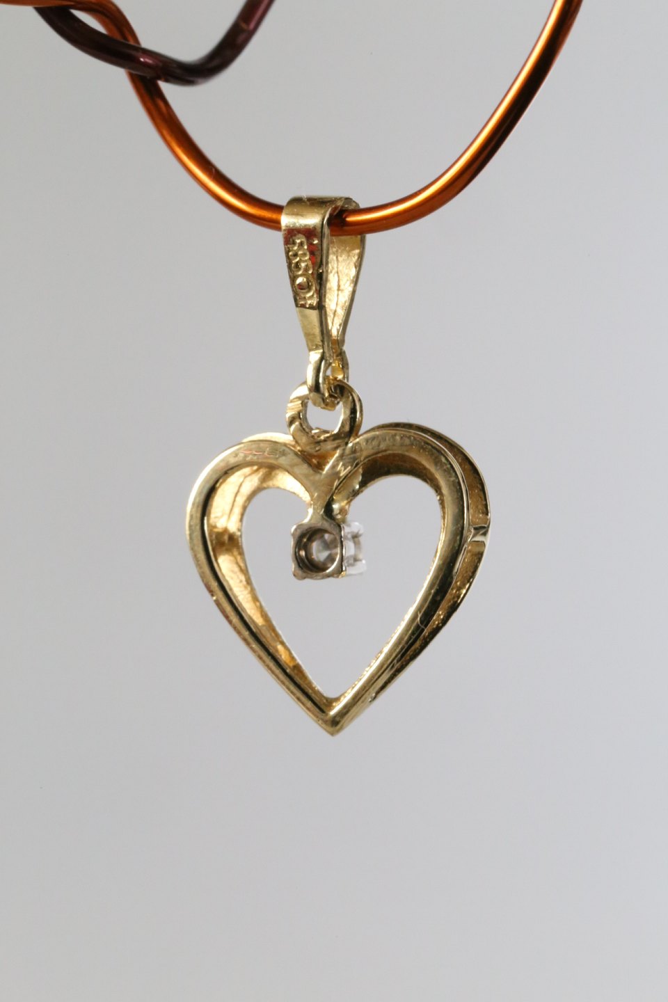 Hjerteformet vedhæng i 14 karat guld, med en Brillant. Stemplet 585. Meget eksklusivt.