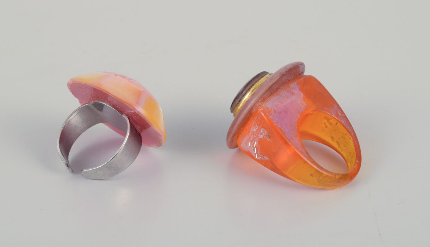 Fransk smykkekunstner. Fem designerringe i metal og plast. Forskellige designs.