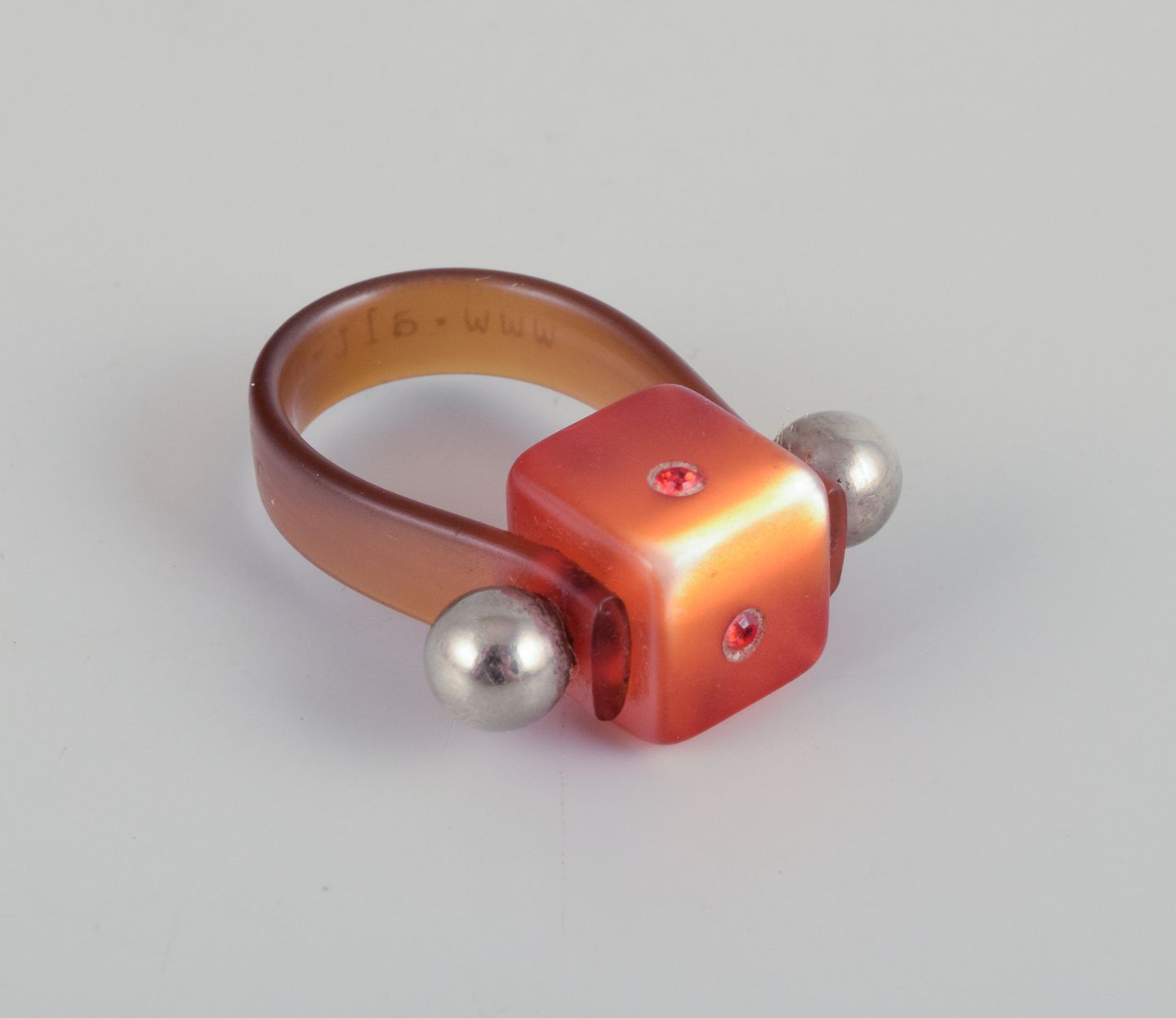 Fransk smykkekunstner. Fem designerringe i metal og plast.