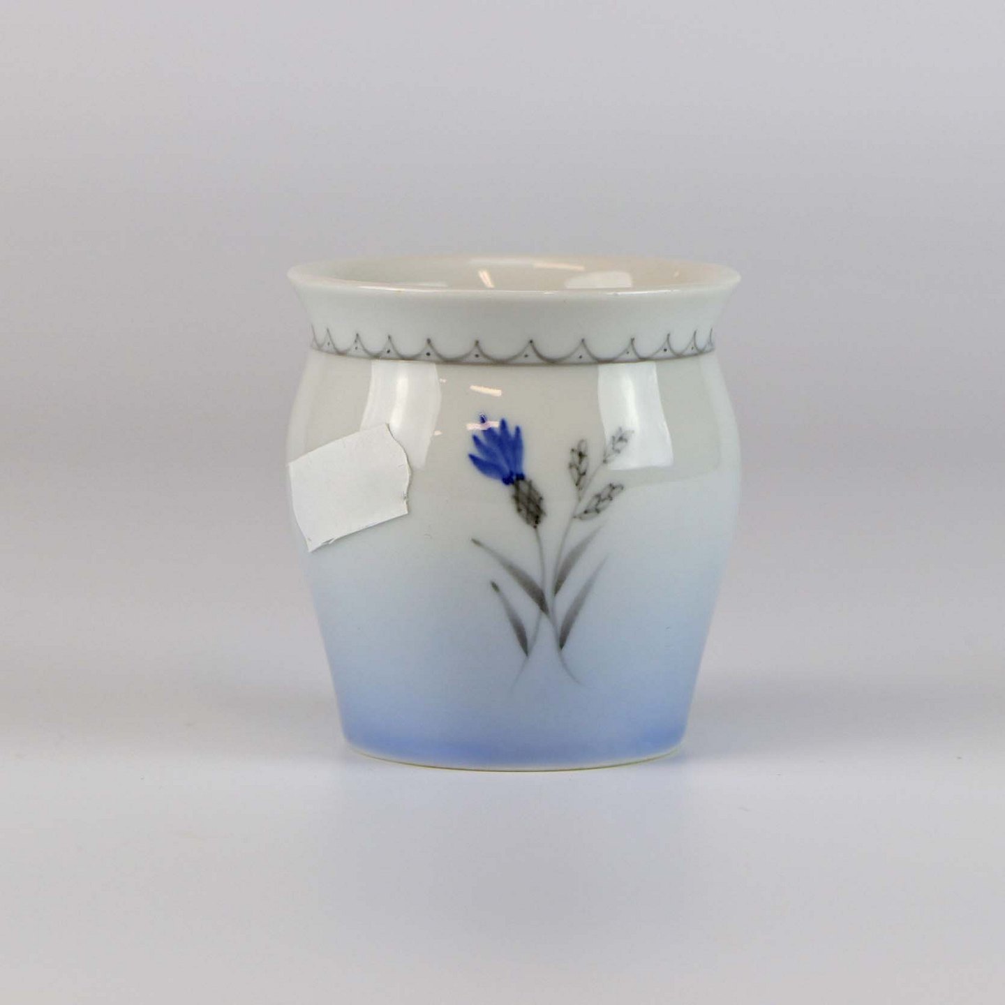 Demeter er af hvidt porcelæn med graduering af blå i kanten og med motiv af kornblomst
