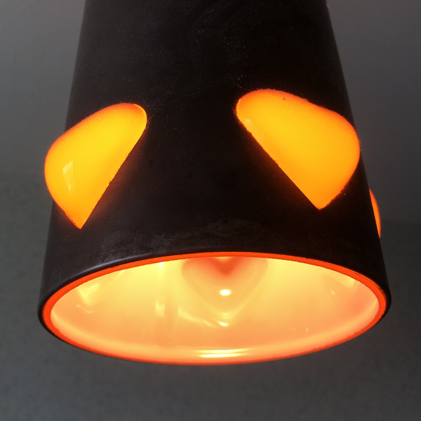 Retro lamp with hearts. Orange glass and metal. Nice used condition. Height 20 cm.