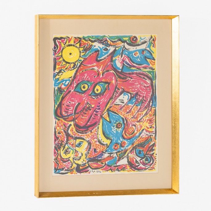 Lithograph from 1970 in a gold-painted frame. Signed.
