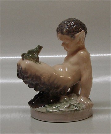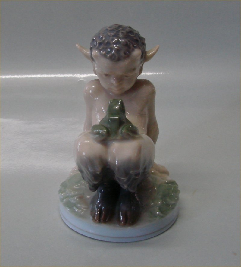 Kgl. figur fra Royal Copenhagen 1713 Faun eller trold med frø 12 cm. 1. sort I hel og fin stand Chr. Thomsen