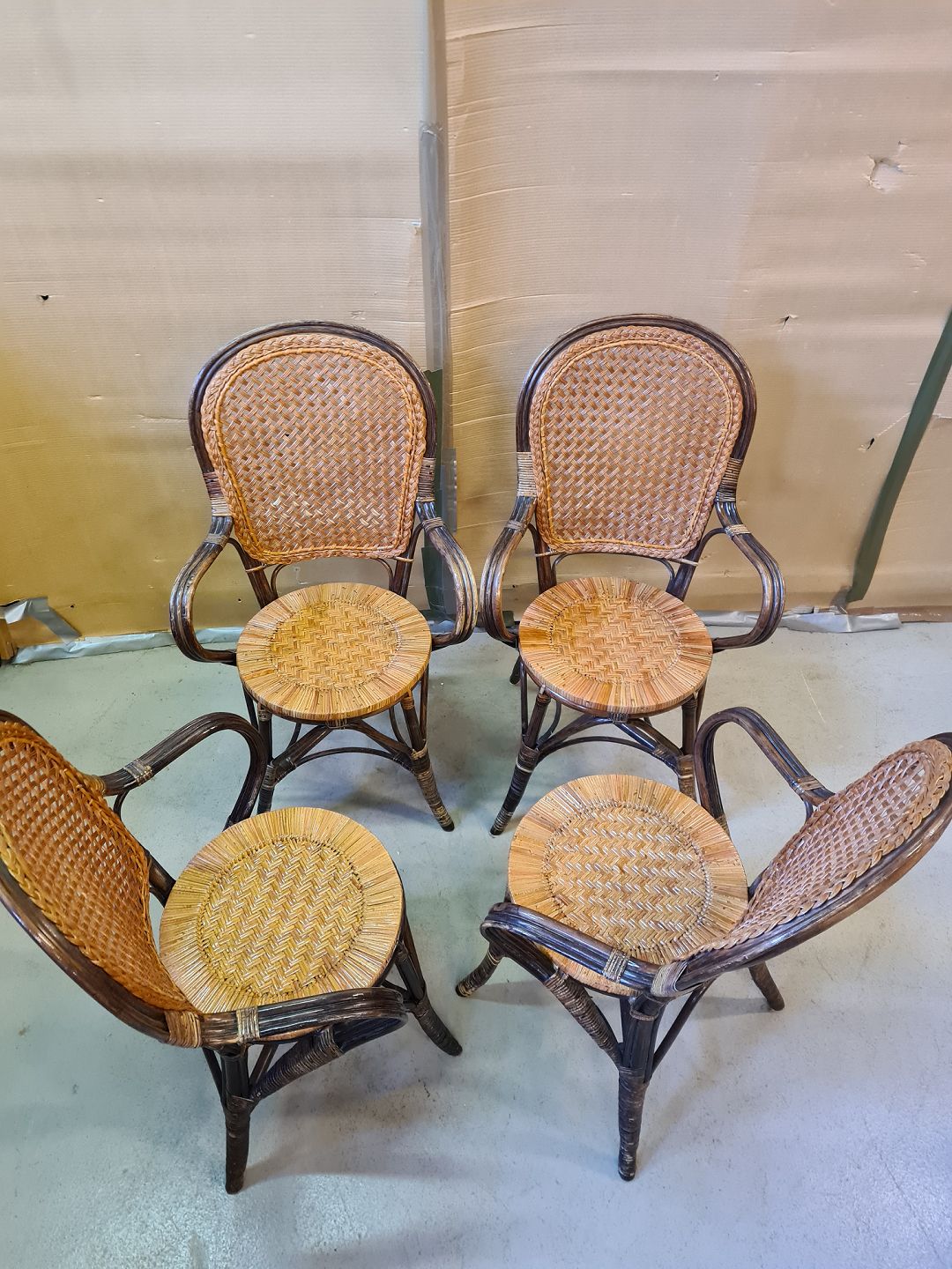 4 Armstole i kurveflet og bambus, fra 2000erne.