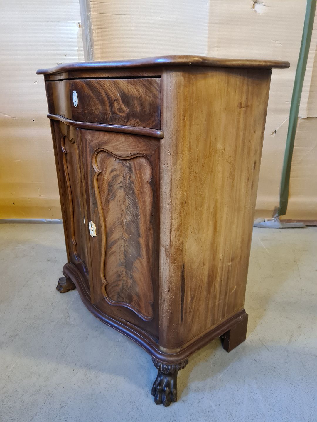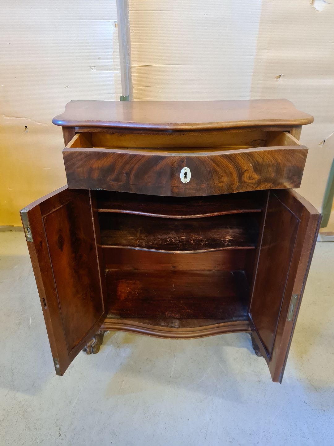 Skab i fineret mahogni, fra 1890erne.