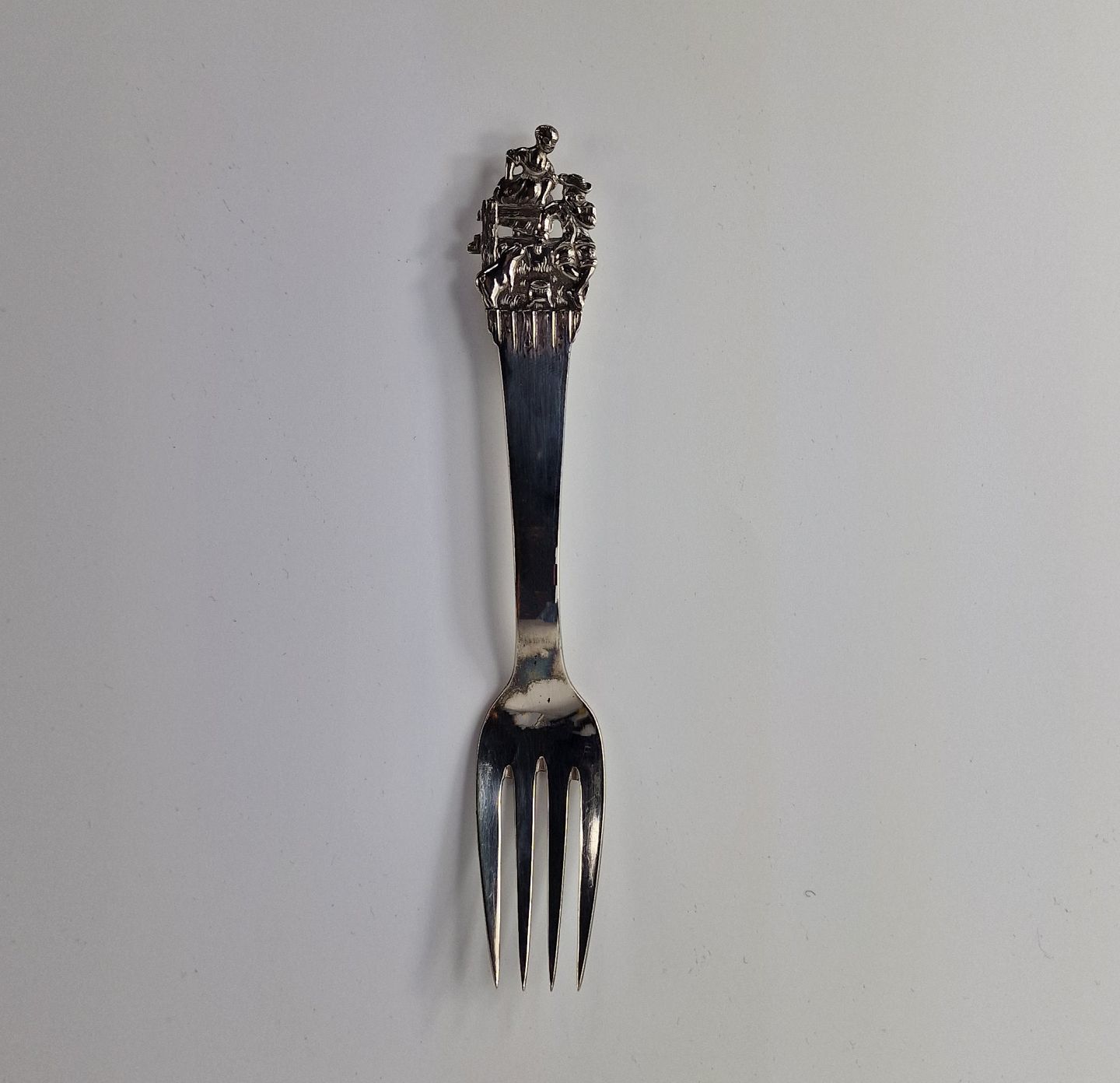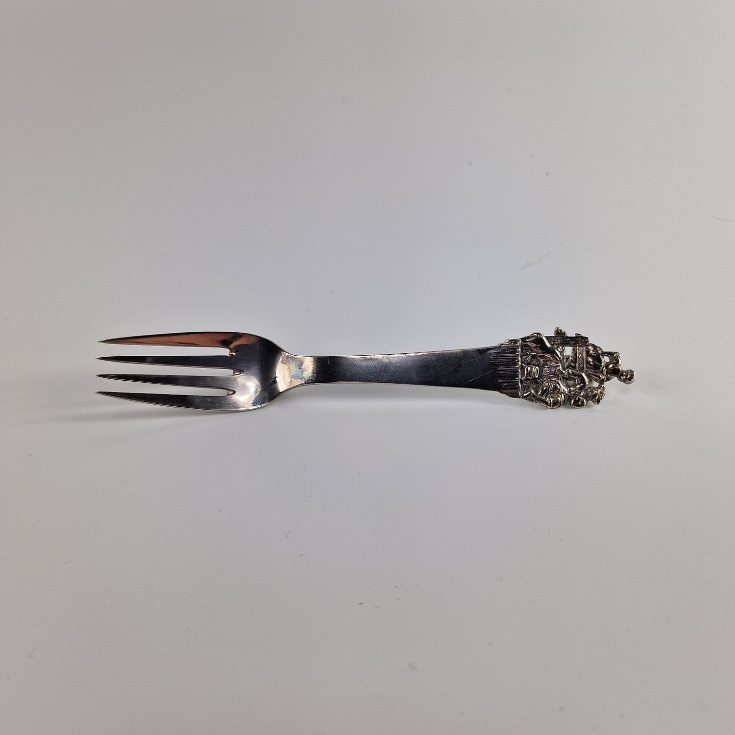 H.C. Andersen barnegaffel i sølv. Med motiv fra eventyret Prinsessen og svinedrengen