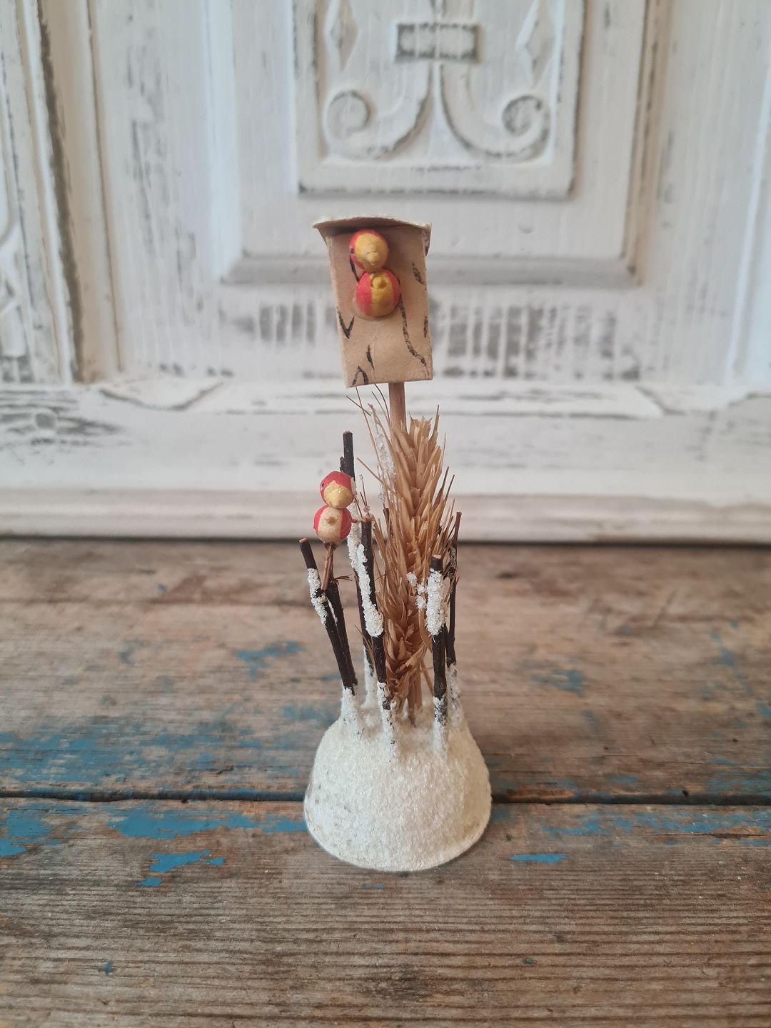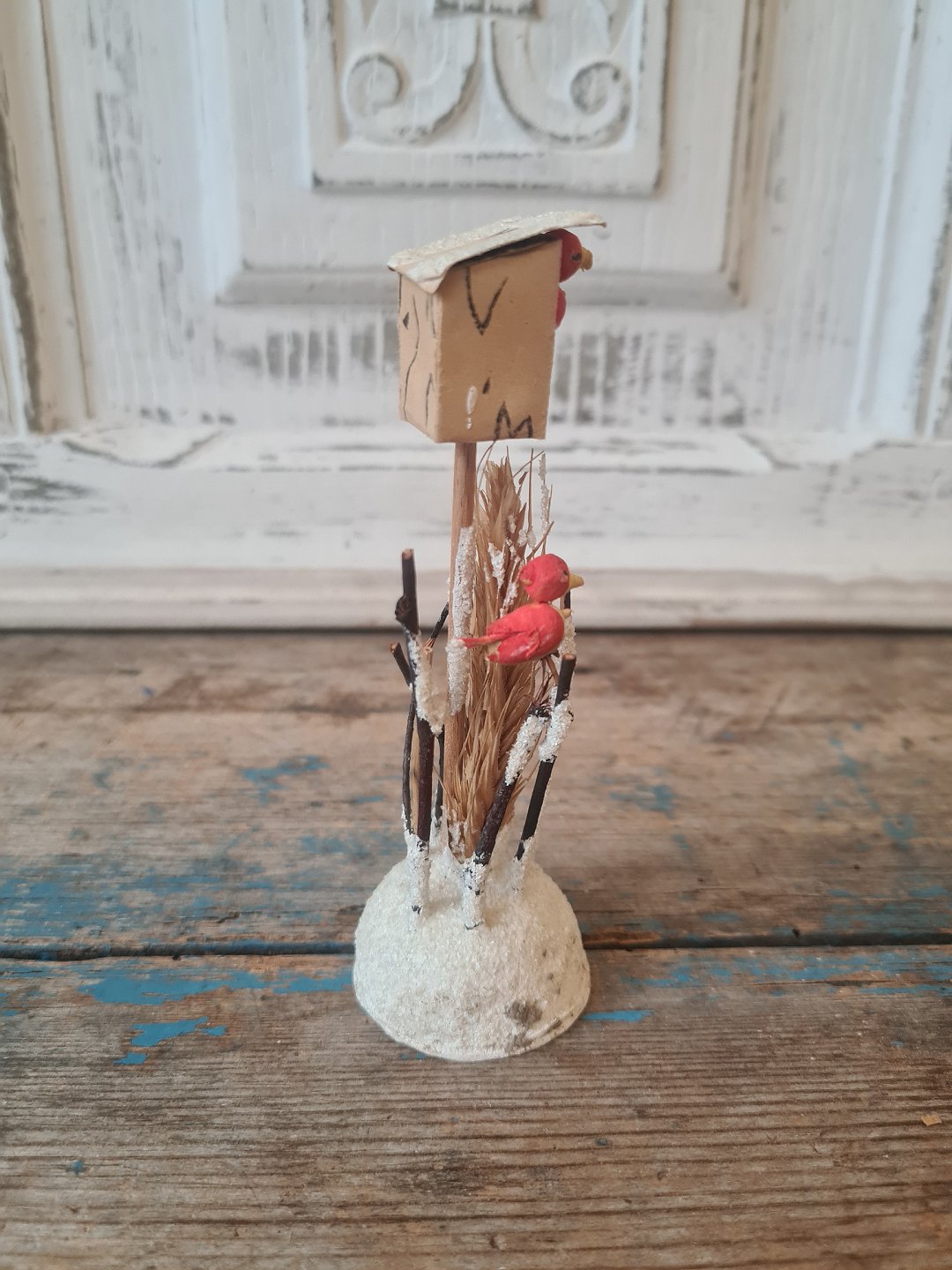 Text zugänglich auf Dänische: Gammelt julepynt - Fuglehus i snedrive med to fugle
