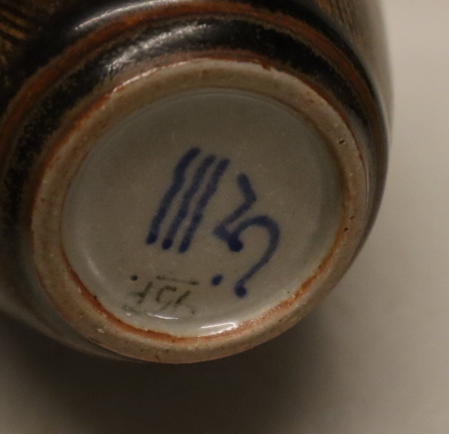 Kongelig Dansk Stentøj Kgl. Nils Thorsson Vase brun glasur med stregmønster 14 cn