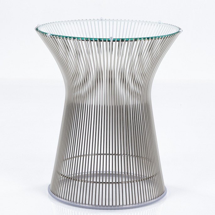 Warren Platner designede Platner Sidebordet for Knoll i 1962, som skiller sig ud med sin unikke base bestående af bøjede og svejsede metalstykker. Disse metalstykker skaber en iøjnefaldende marmorlignende effekt, der er karakteristisk for Platner kollektionen. Bordets metalelementer fremstår med en