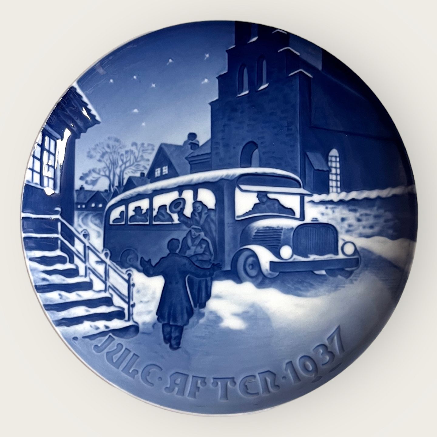 Bing & Grøndahl, Christmas plate, 1937 "The Christmas guests arrive" 18cm in diameter, 1st sorting, design Ove Larsen *Perfect condition*