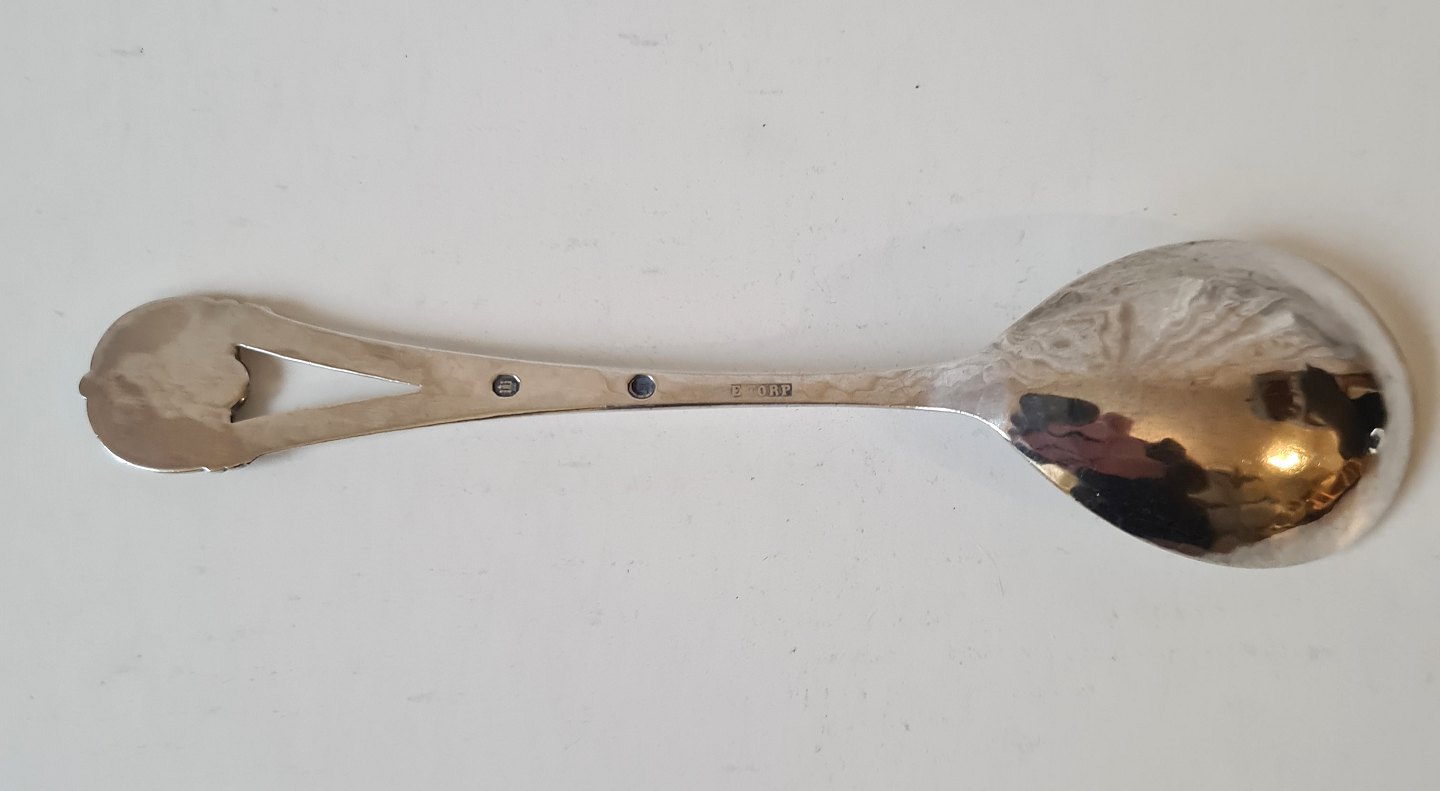 Smuk hammerslået serveringsske i sølv dekoreret med blomst fra 1922