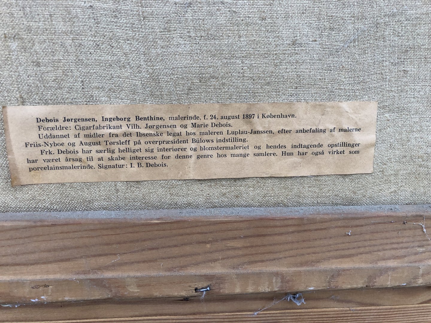 Ingeborg Debois (1897-1970). Oliemaleri på lærred, Tulipaner i vase. Mål med ramme 57x47 cm