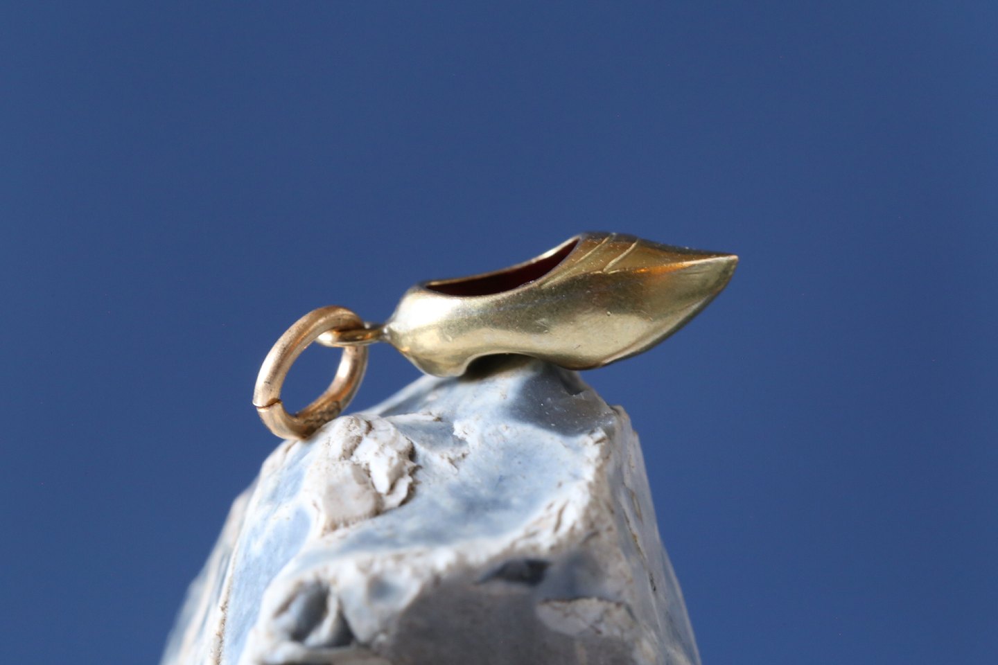 Vedhæng i 14 karat guld, Træsko. Stemplet 585.
