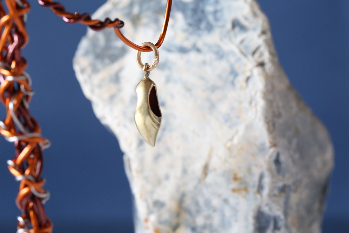 Flot lille vedhæng i 14 karat guld, formet som træsko, rødfarvet indvendig. Vedhænget er et simpelt motiv, der let kan kombineres med andre vedhæng. Brug også gerne vedhænget til et armbånd.