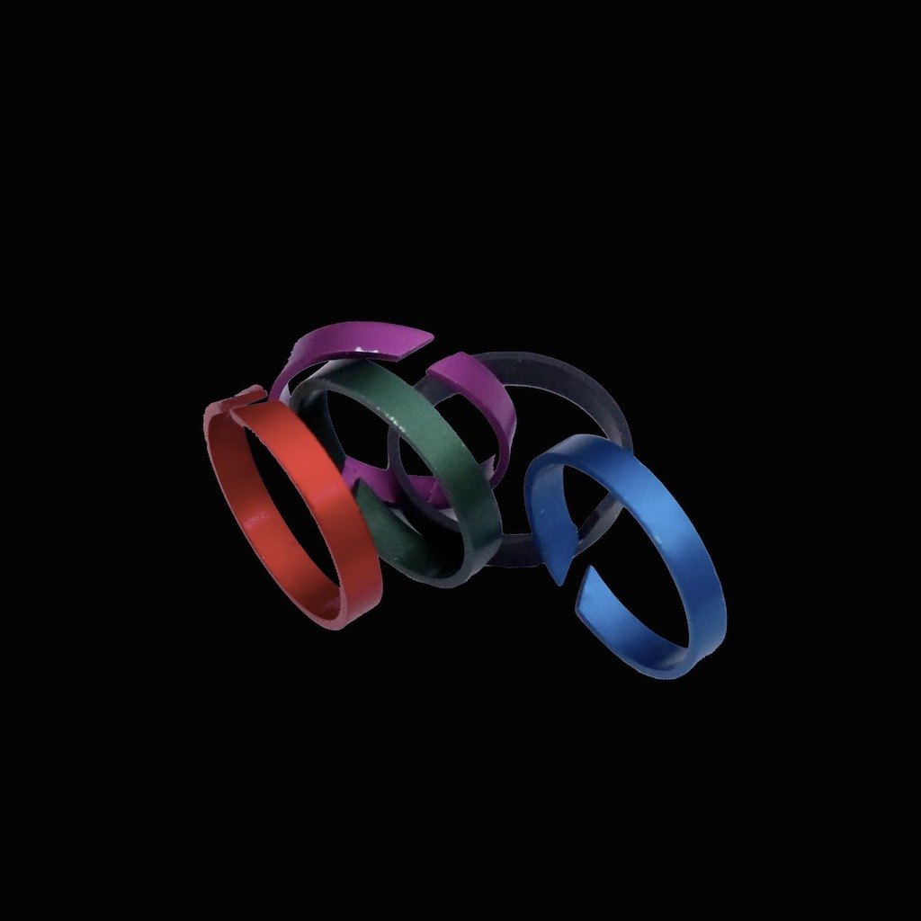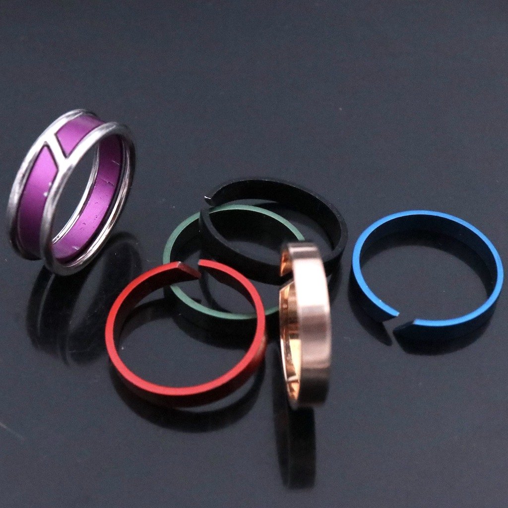 14k White Gold Ring with Yellow Gold insert ring and five colored aluminum insert Rings.