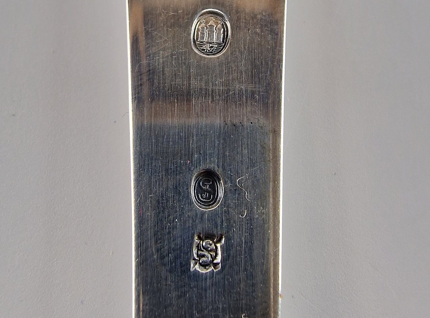 Stemplet med 3 tårne og J.S (Sølvguardein Johannes Siggaard 1932 - 1960)