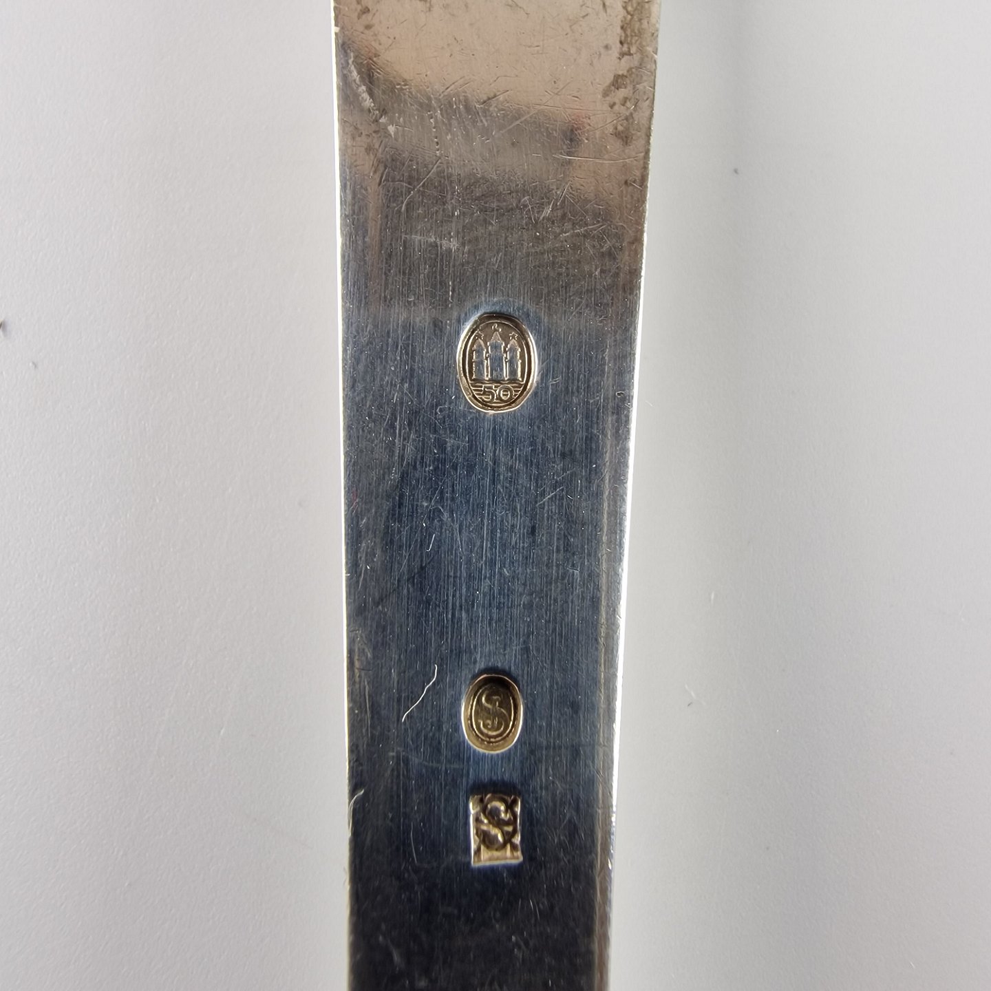 H.C. Andersen barnegaffel i sølv. Med motiv fra eventyret Den flyvende kuffert. År 1950
