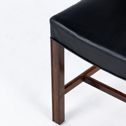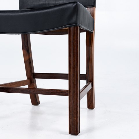 KK 3949 - Yderst sjældent sæt á 6 'Røde Stole' også kendt som 'Barcelona'-stole i Rio-palisander og sort læder. Originale mærker fra producent. Lille model.