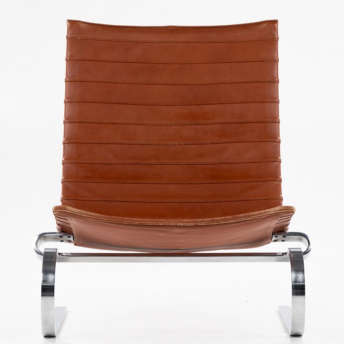 PK 20 - Frisvinger-lænestol i patineret cognac-læder. Stemplet fra producent.