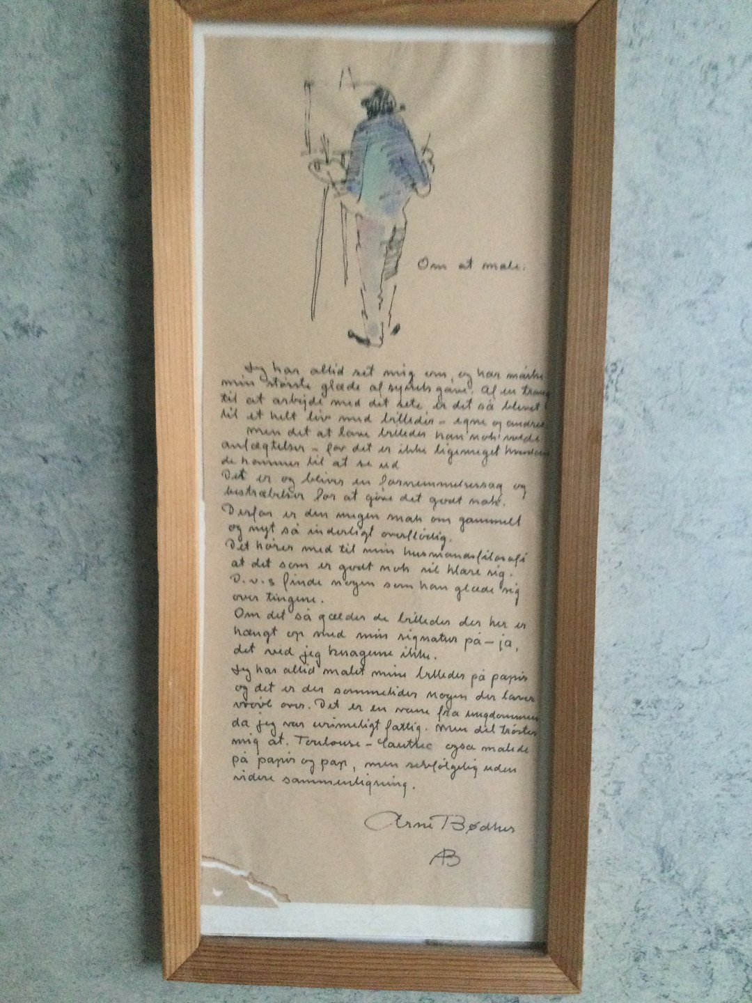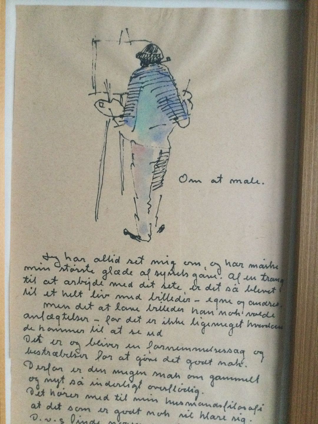 Maler ved sit staffeli "Om at male" med lang tekst.