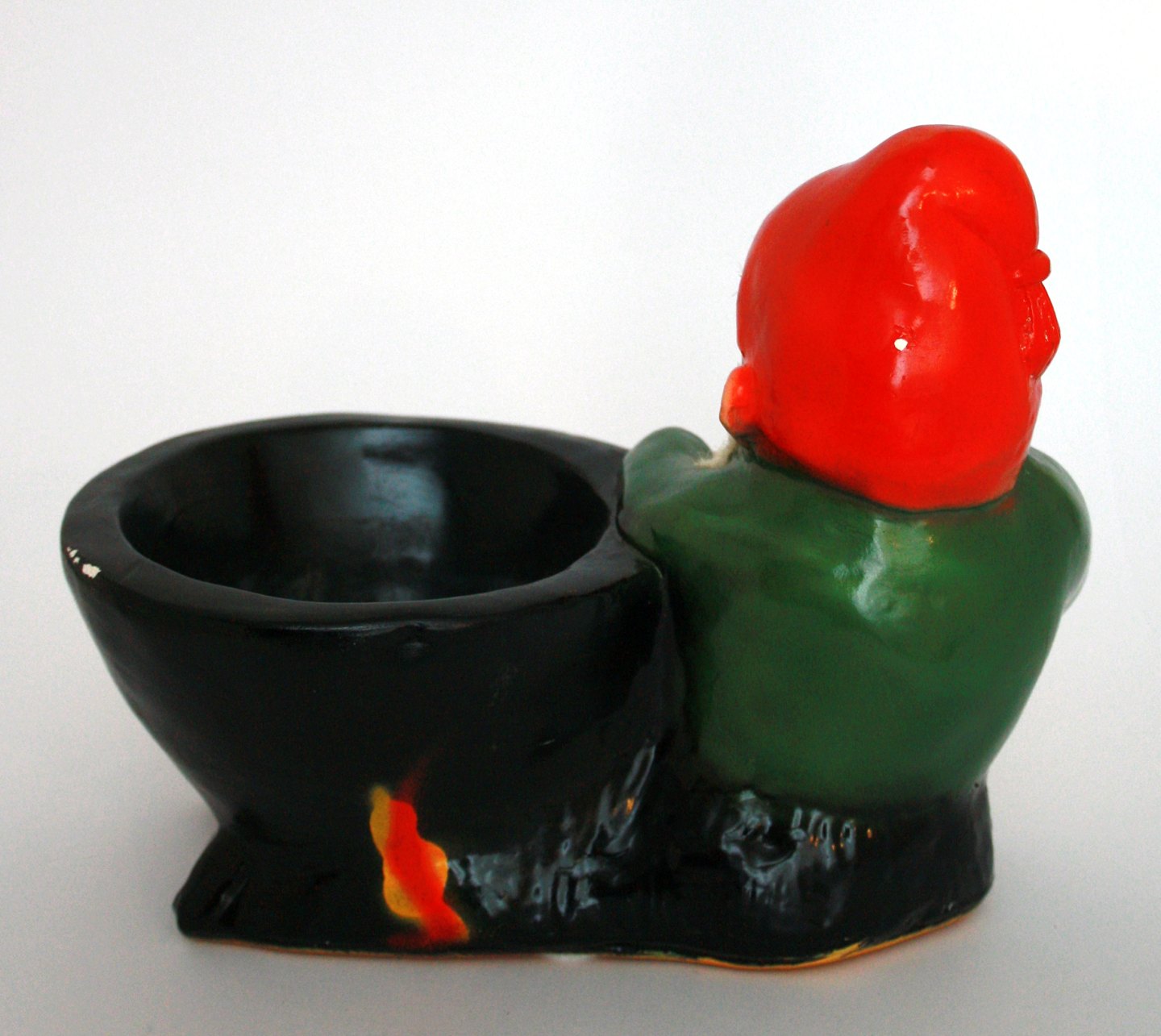 Text available in Danish: Figur-kunst Hauketo, Norway, Nisse med God jul skål, nissen har glasøjne og en form for krøluld skæg og øjenbryn. Rigtig hyggelig nisse fra 1960'erne. Højde 19 cm. Længde 23 cm. God stand med enkelte glasurafskalninger. Pris: 700 kr.