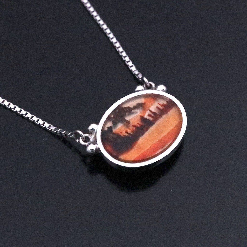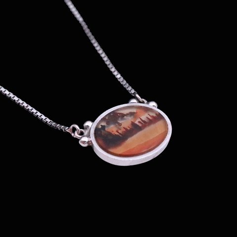 Jørgen Peter Vang. 14k White Gold Pendant with Landscape Agate.