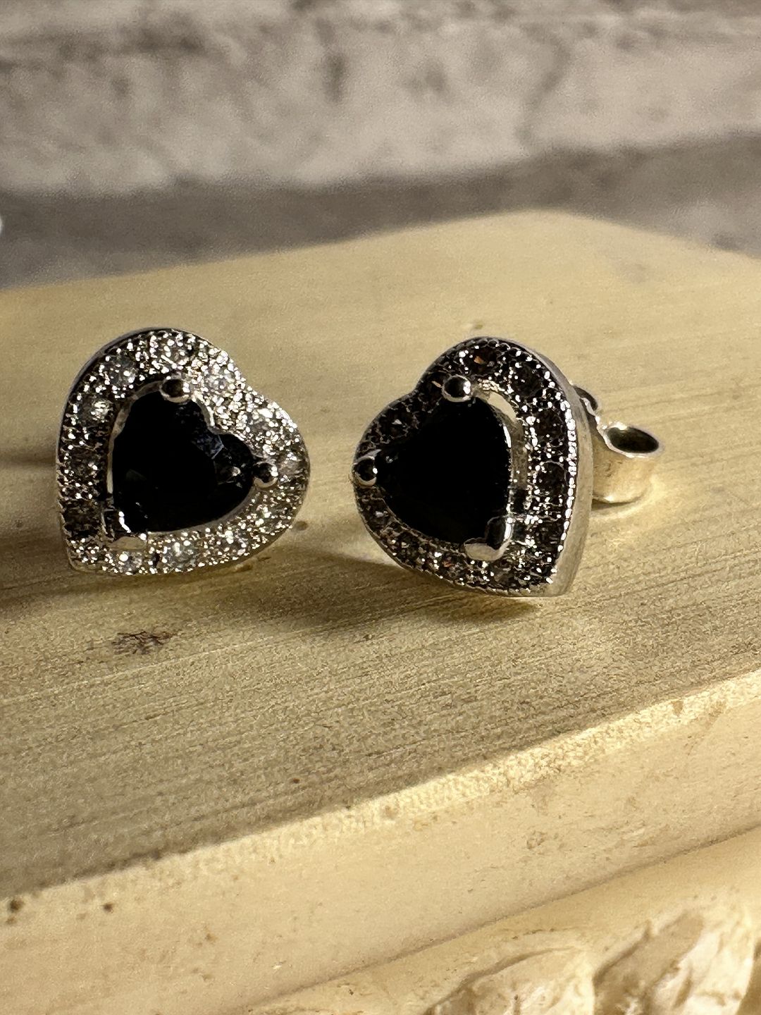 heart shaped earrings. centered with Blue heart-shaped crystal, surrounded by numerous small Brilliant-shaped crystals.