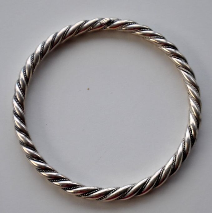 Twisted sterling silver bangle. 20th century Denmark. Stamped 925. Inner circumference: 20 cm.
