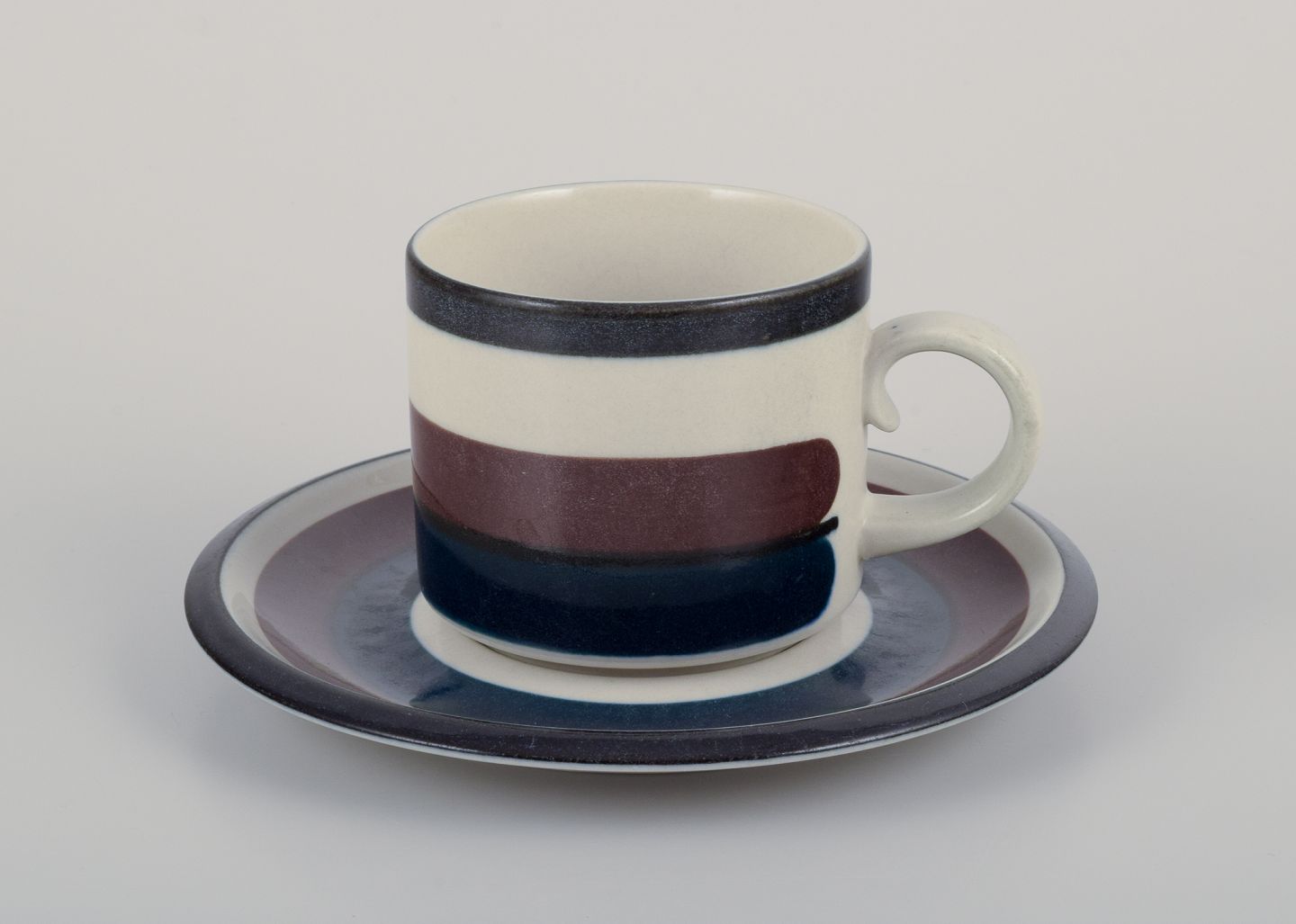 Anja Jaatinen-Winquist for Arabia, Finland. A set of six "Kaira" coffee cups with saucers. Stoneware.