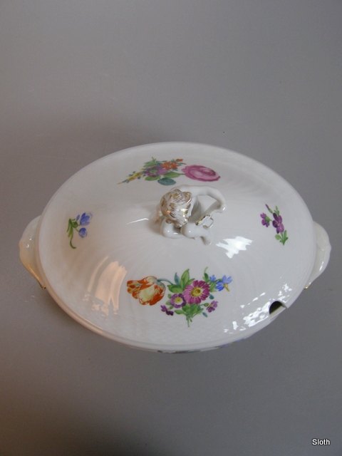 R.C. 493/1669 og 493/1672 Let Saksisk Blomst Terrin med Underfad Fra før 1890 meget fin stand