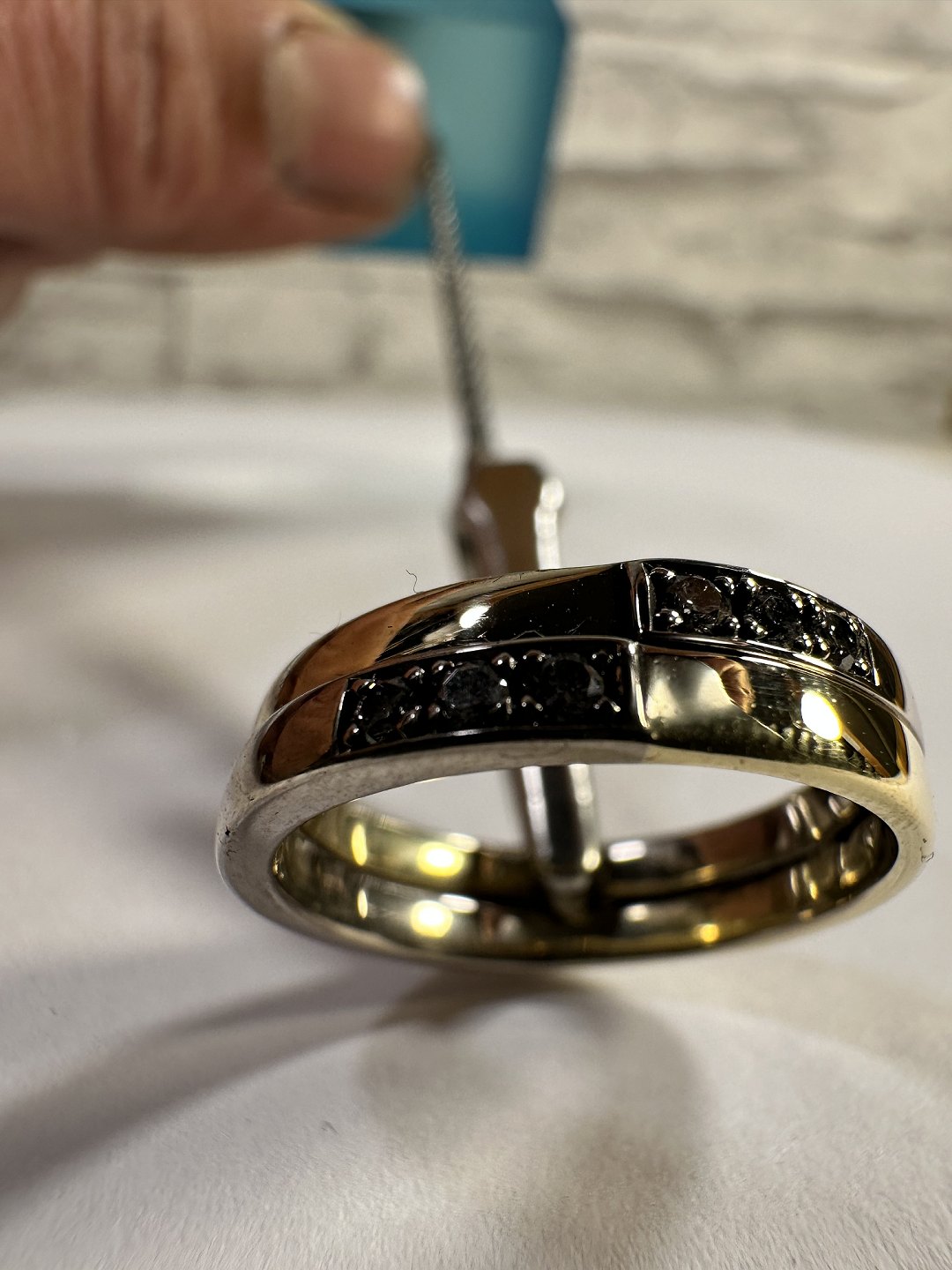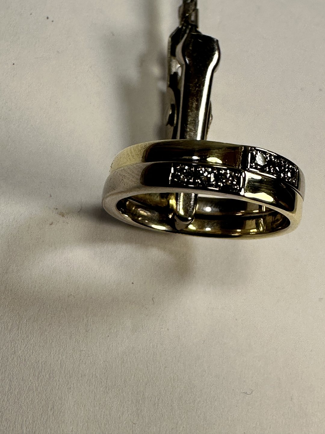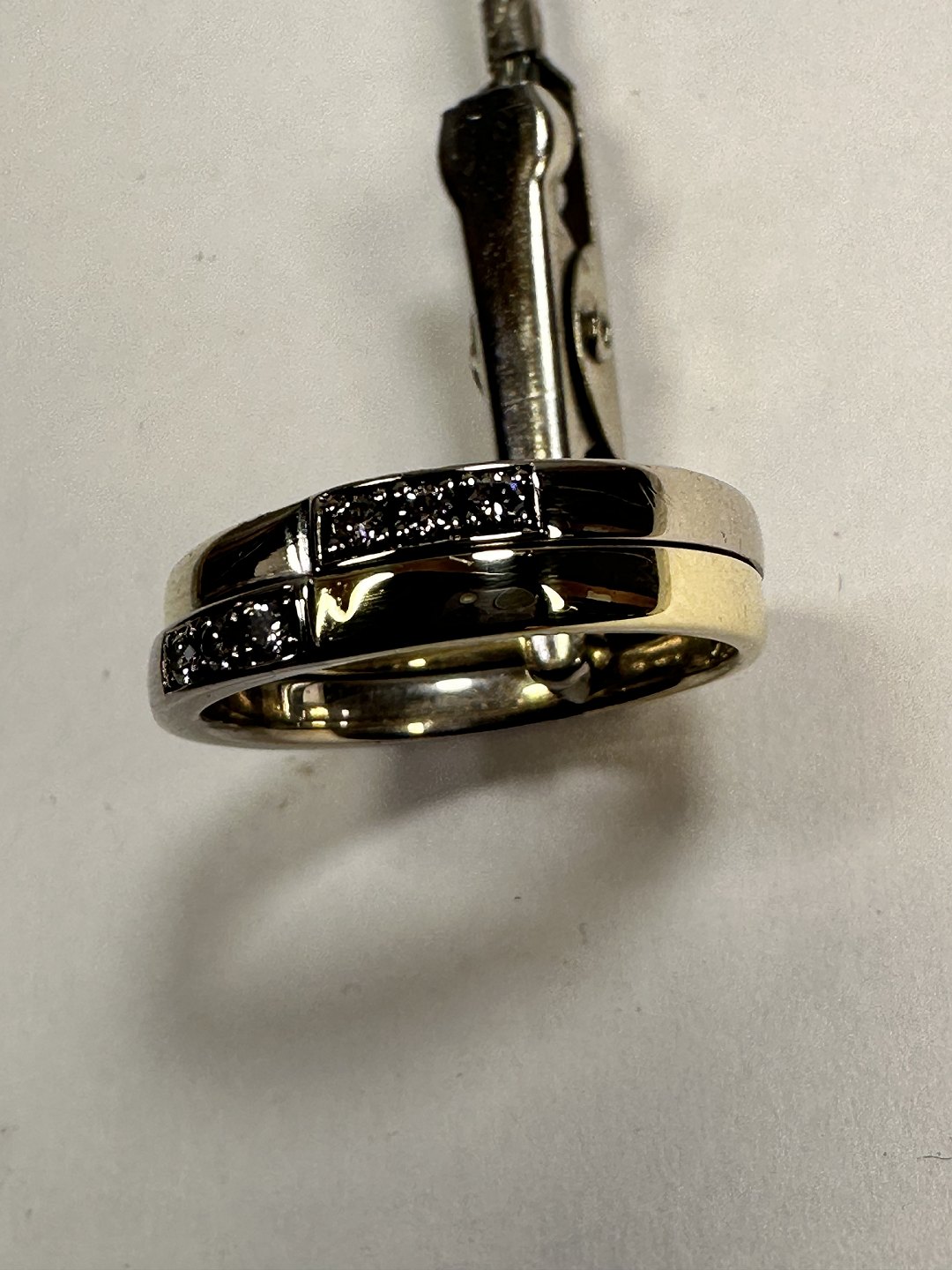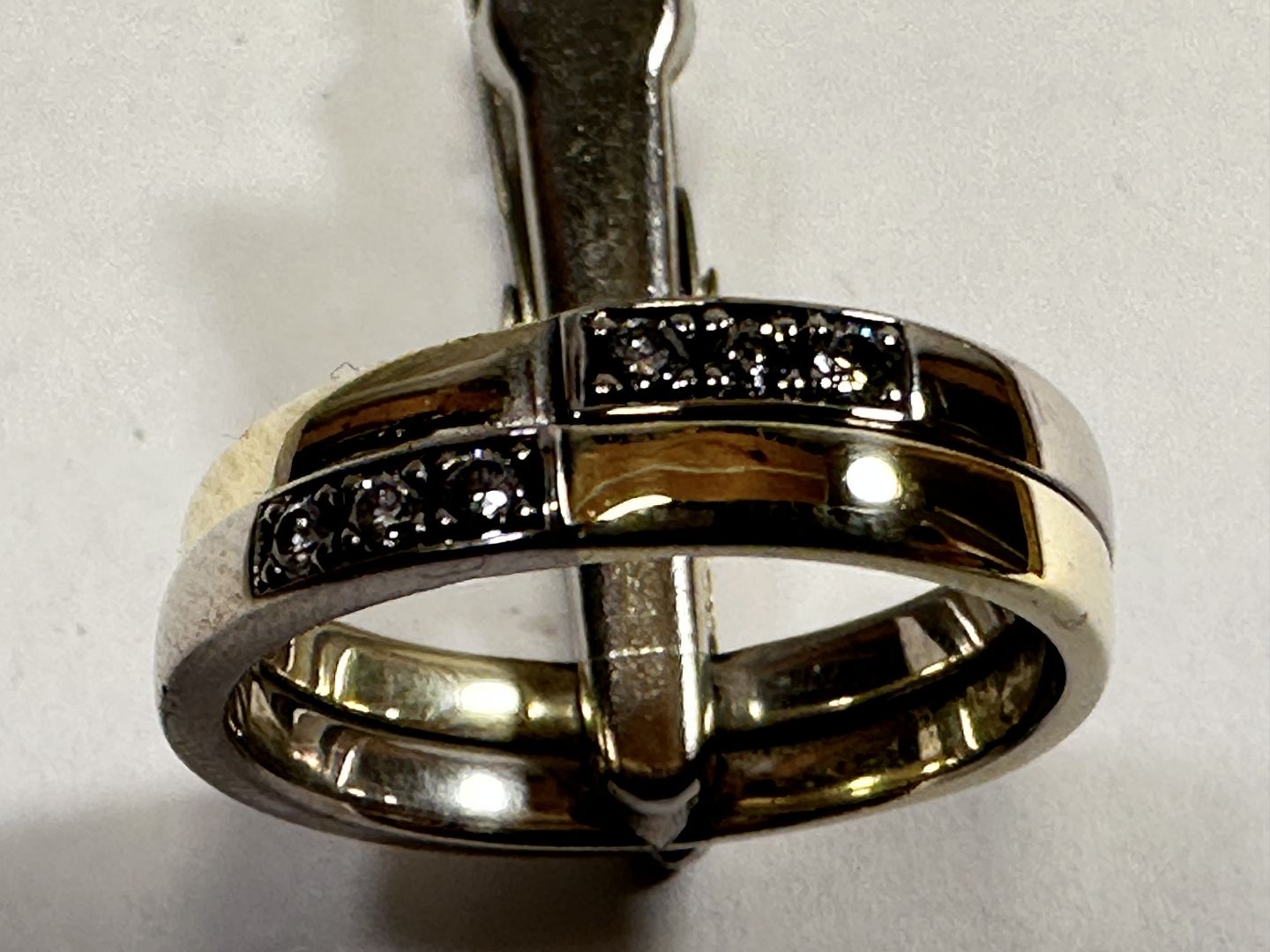 14k Gold ring, 2 rings soldered together, & 6 stone diamonds 00.02 w/vs. Size 54 rings are beautiful and in good condition