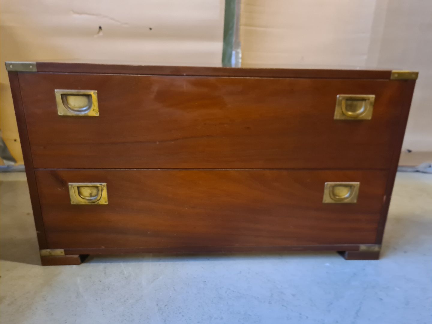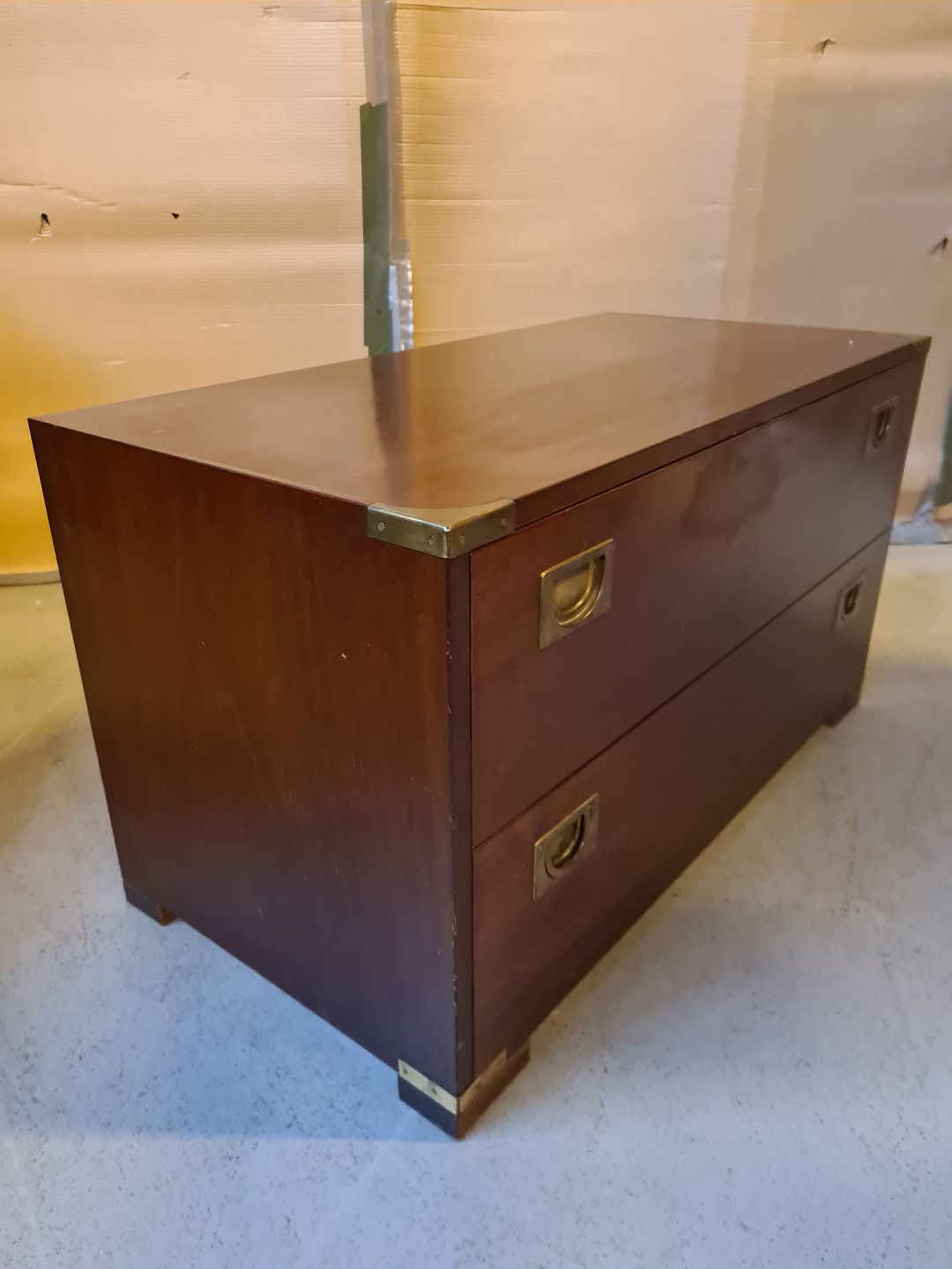 Kommode i military stil, i fineret mahogni, fra 1980erne.