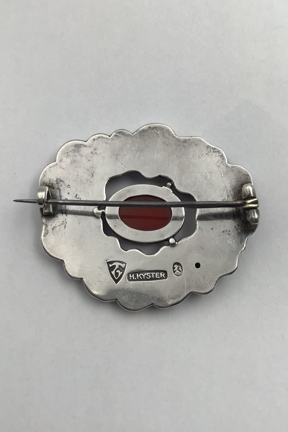 Thorvald Bindesbøll / Holger Kyster Sølv Broche med Rav