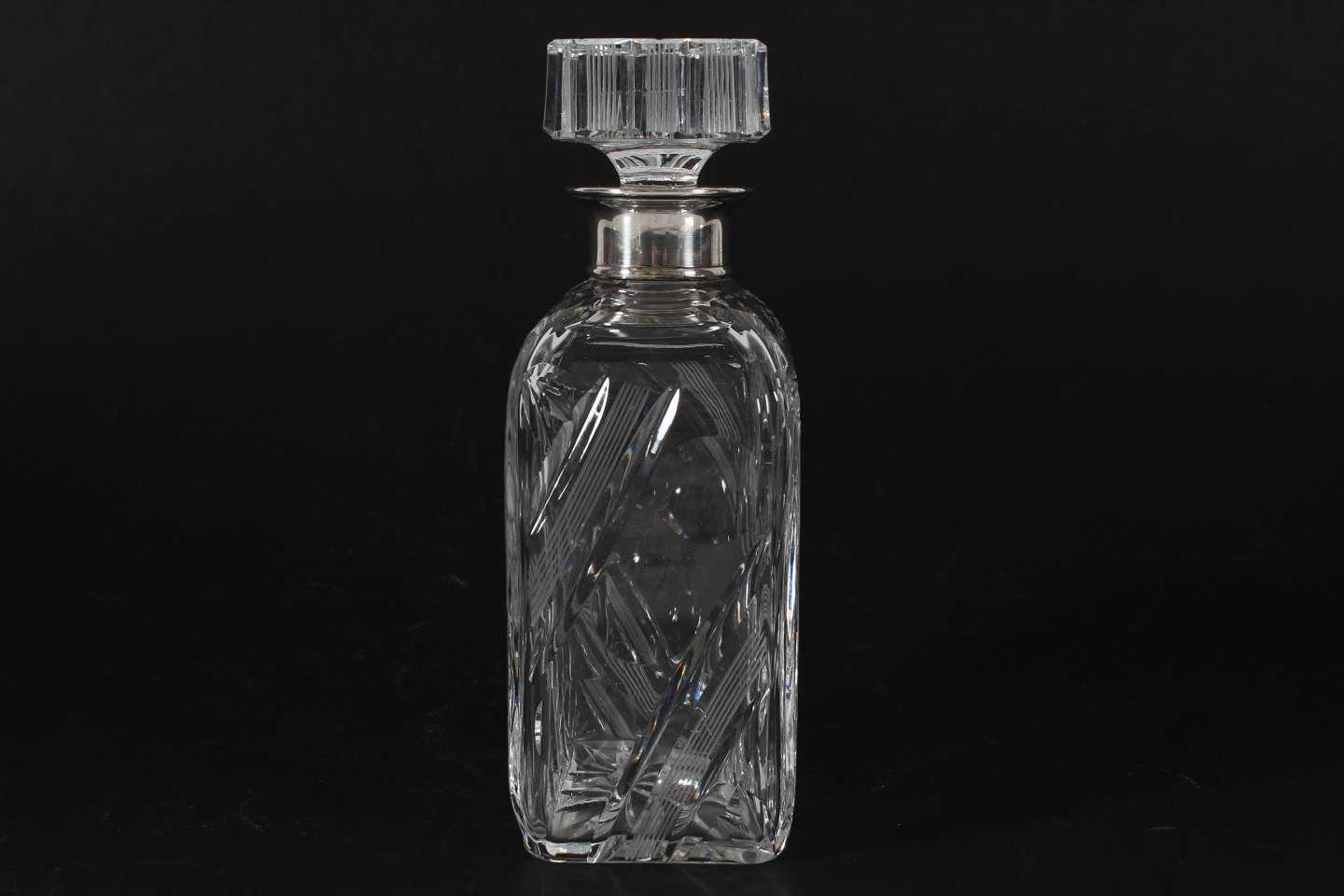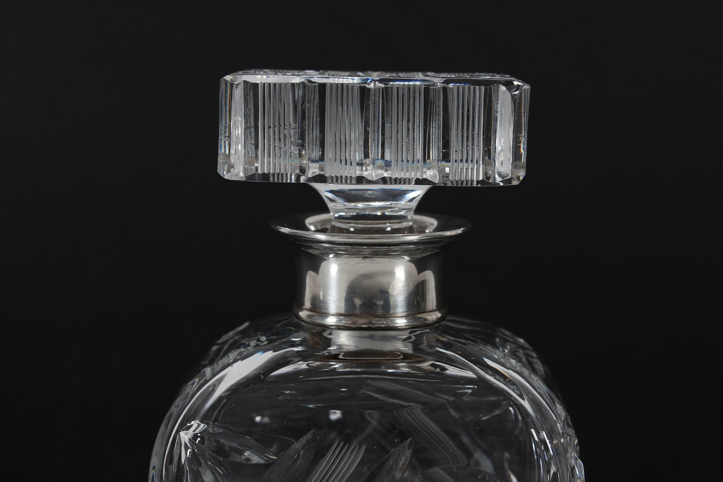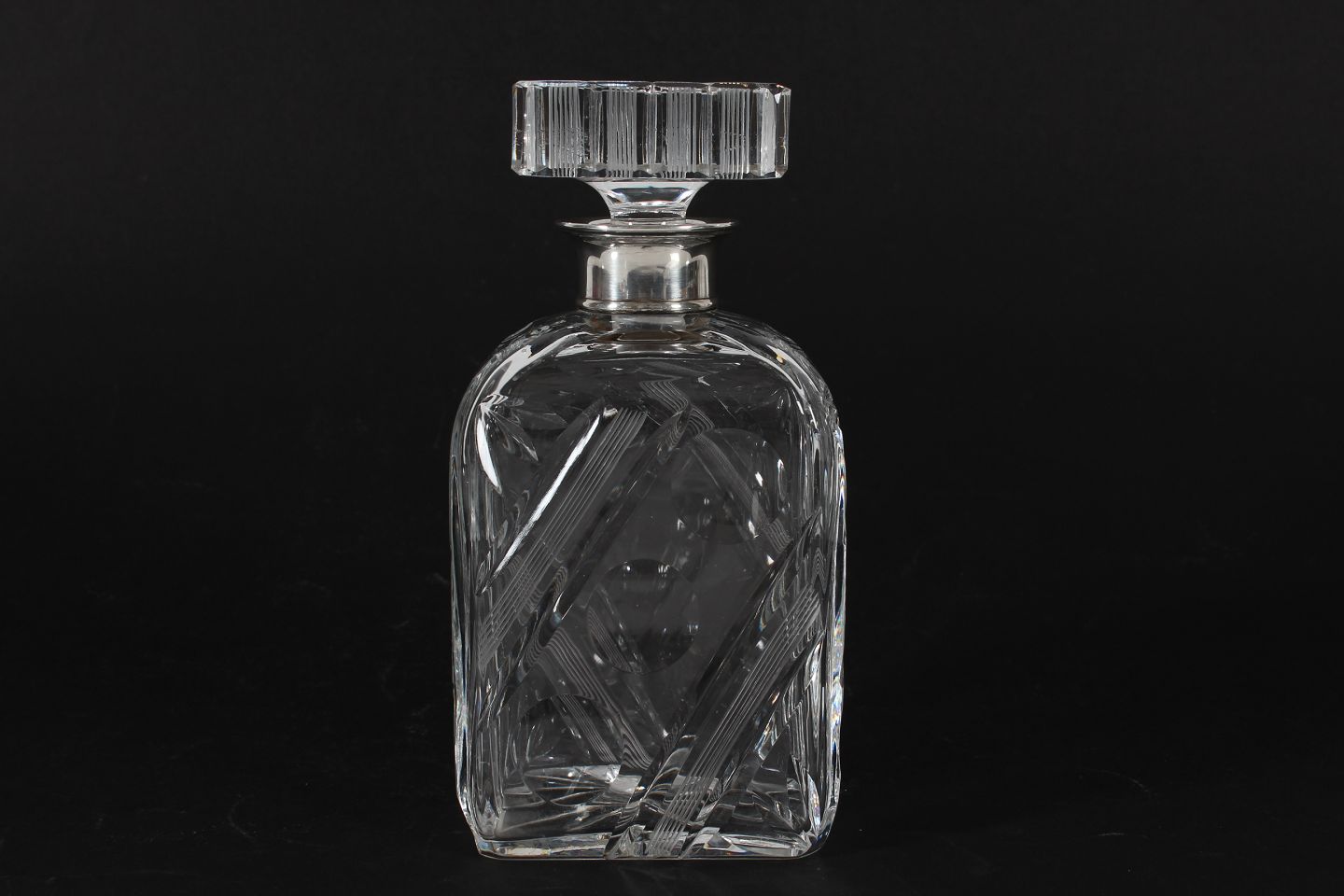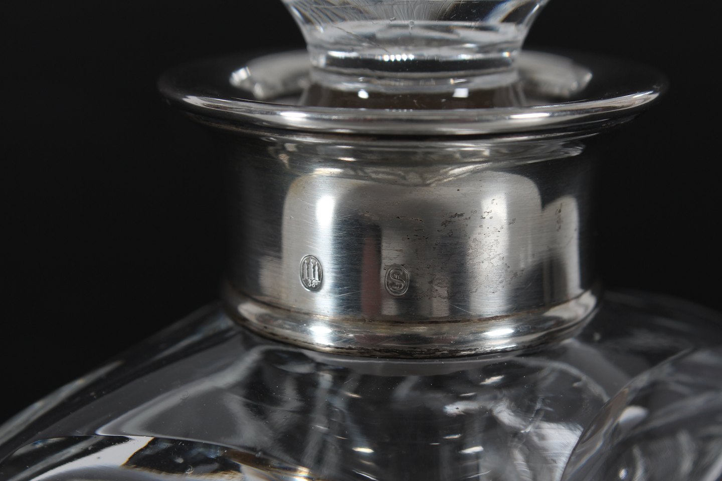 Dansk krystal karaffel med hals af 3-tårnet sølv