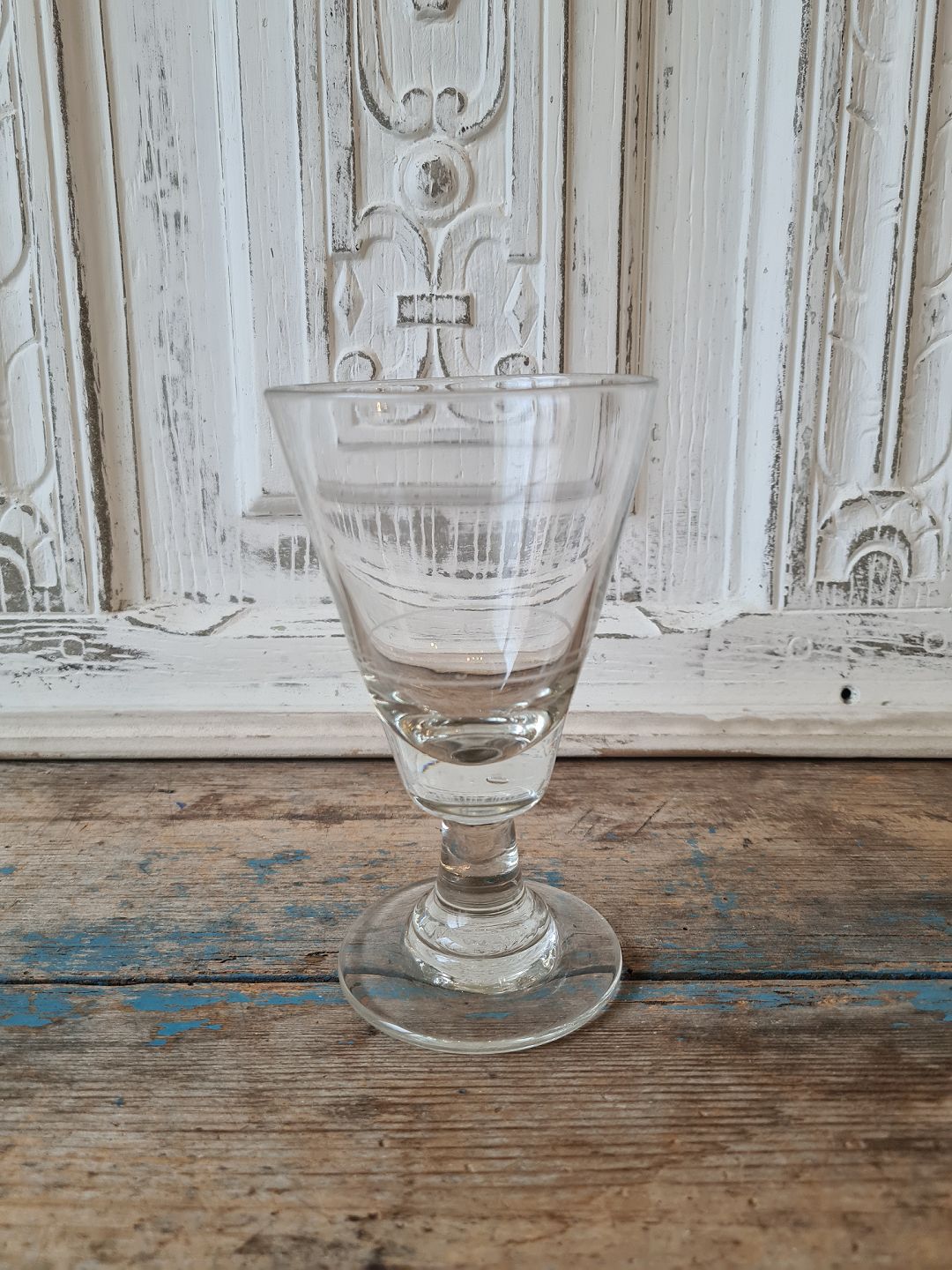 Gammelt mundblæst tragt formet glas med slebet måleenhed