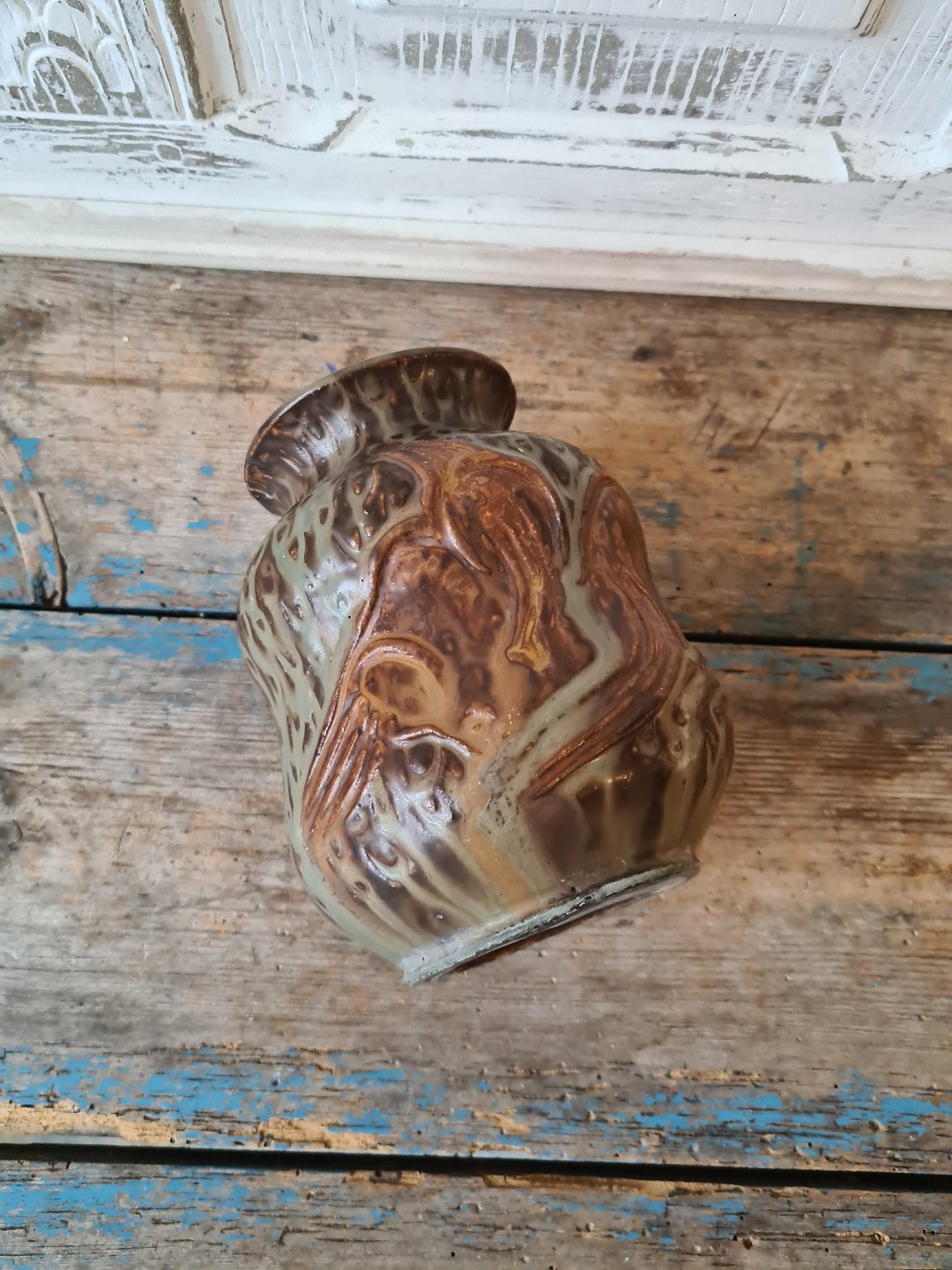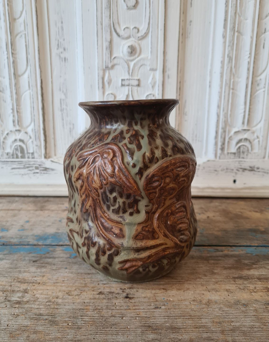 Bode Willumsen unika vase fra eget værksted. Smuk glasur dekoreret med fugle i relief.