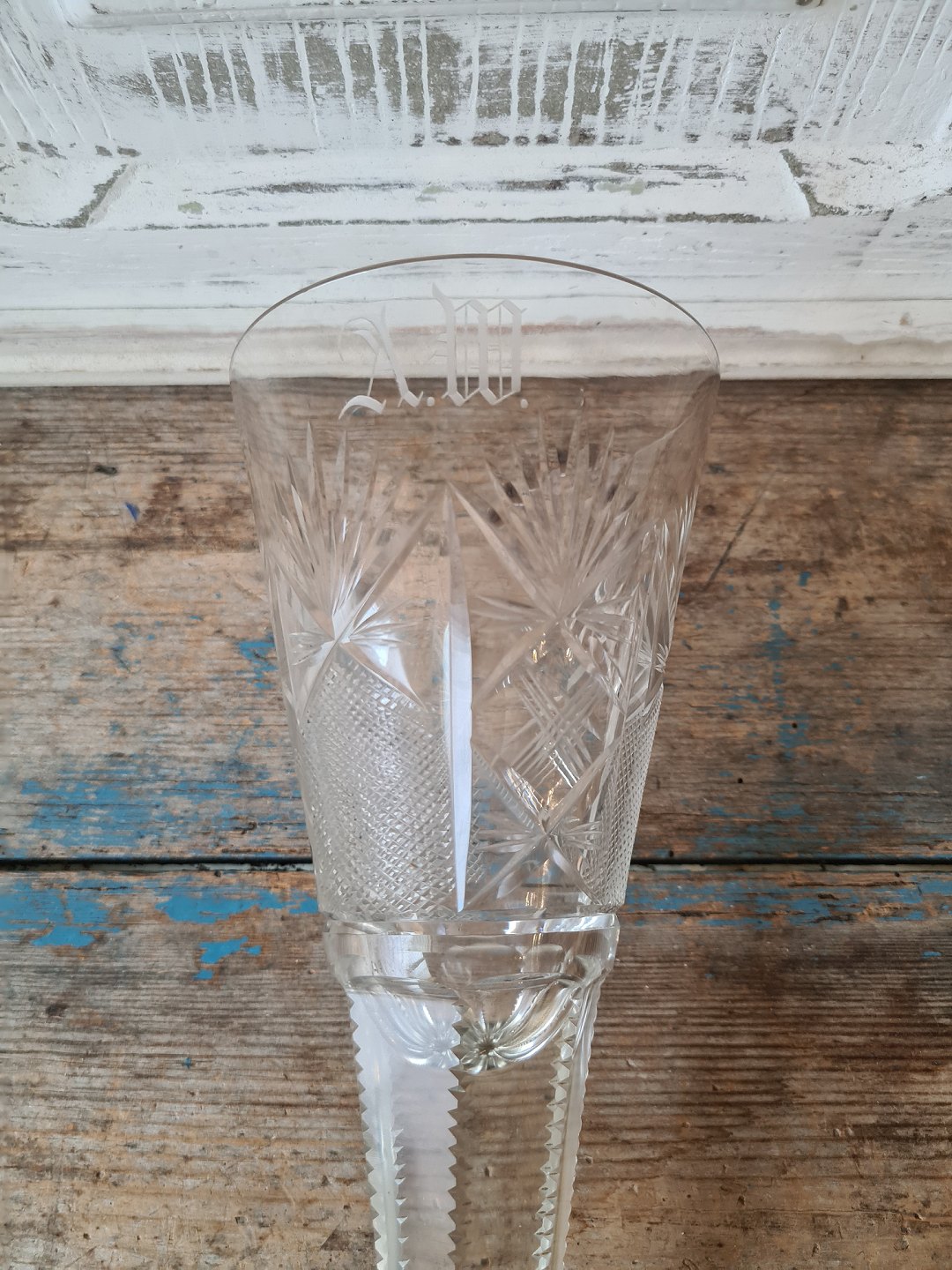 Pokal glas fra Kastrup glasværk med flotte slibninger samt monogam ca. 1910