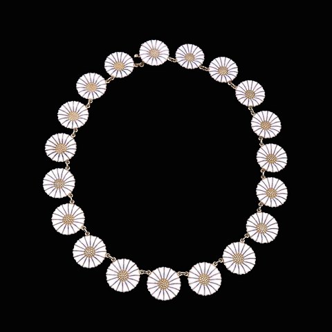 A. Michelsen. Marguerit / Daisy Halskæde i forgyldt sterling sølv og hvid emalje. 18mm.