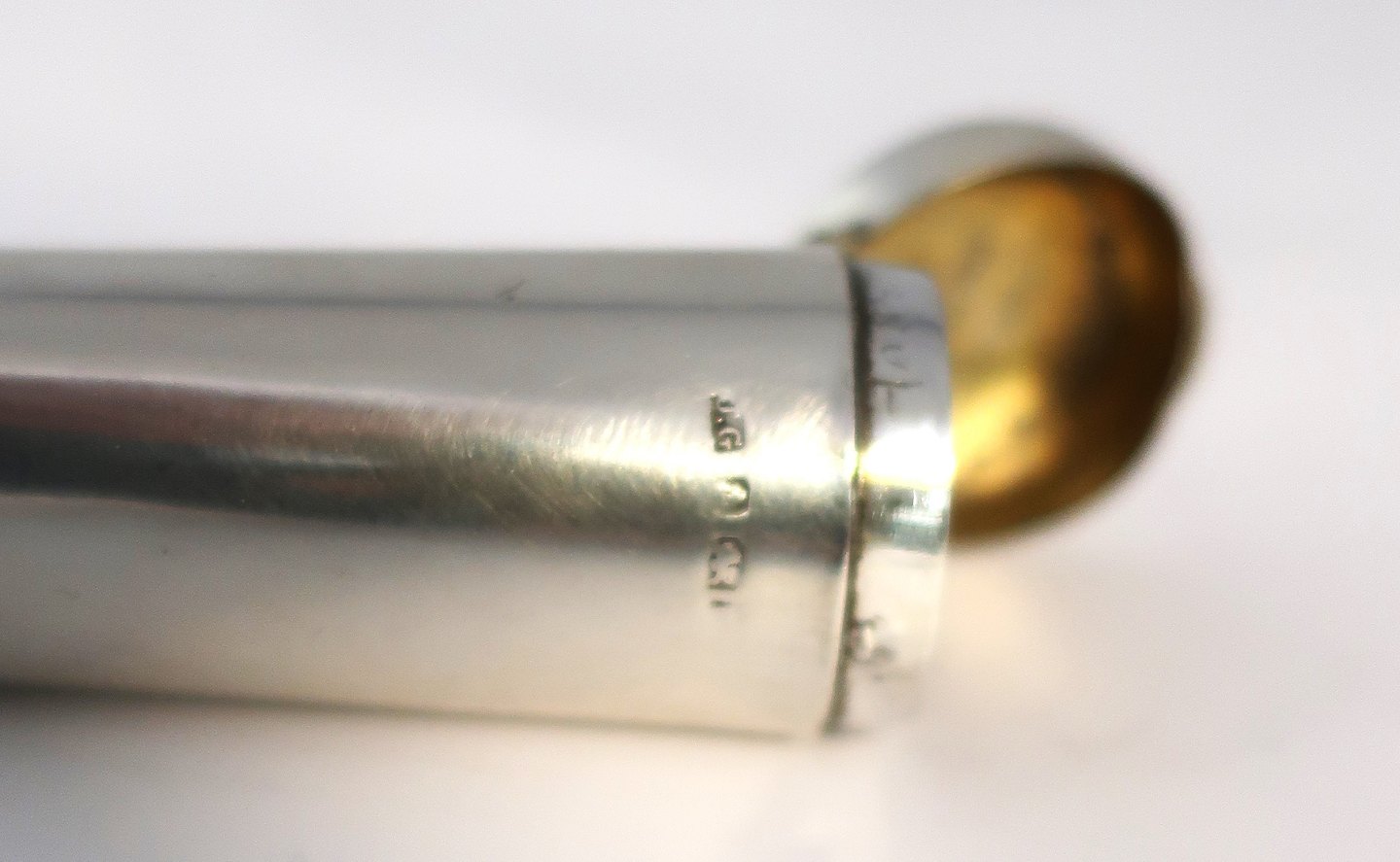 Sølv etui med cigarholder (925). Engelsk cigarholder der er prydet med guldkant 9K (375). Birmingham 1902. Længde 7 cm.