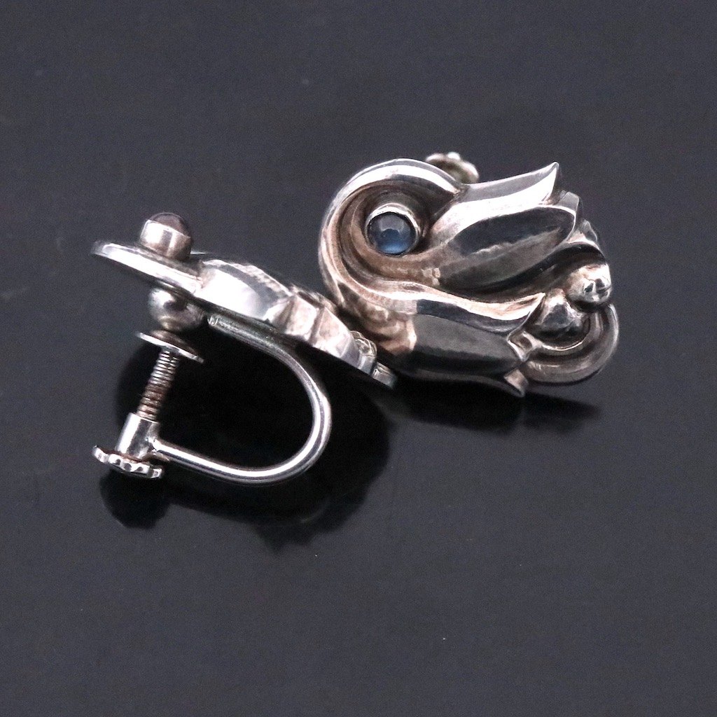 Georg Jensen. Sterling Silver Screw-back Earrings #100 with Moonstone.
