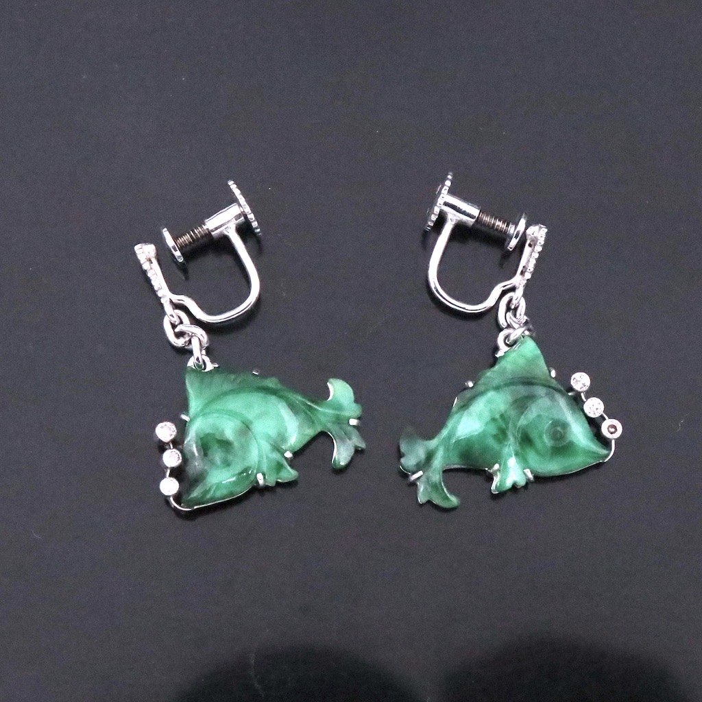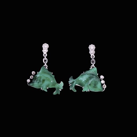 Hugo Grün. Øreskruer i 14k hvidguld med Jade og brillanter.