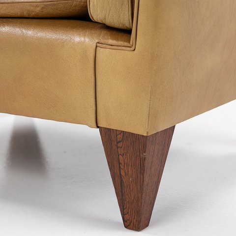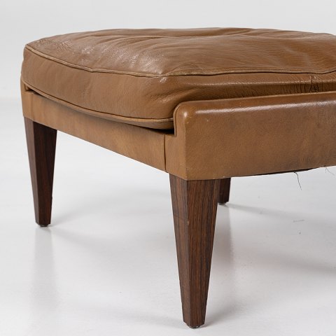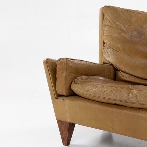 Model V11 - Lænestol i patineret bøffellæder og tilspidsede ben i Rio-palisander. Formgivet i 1965.