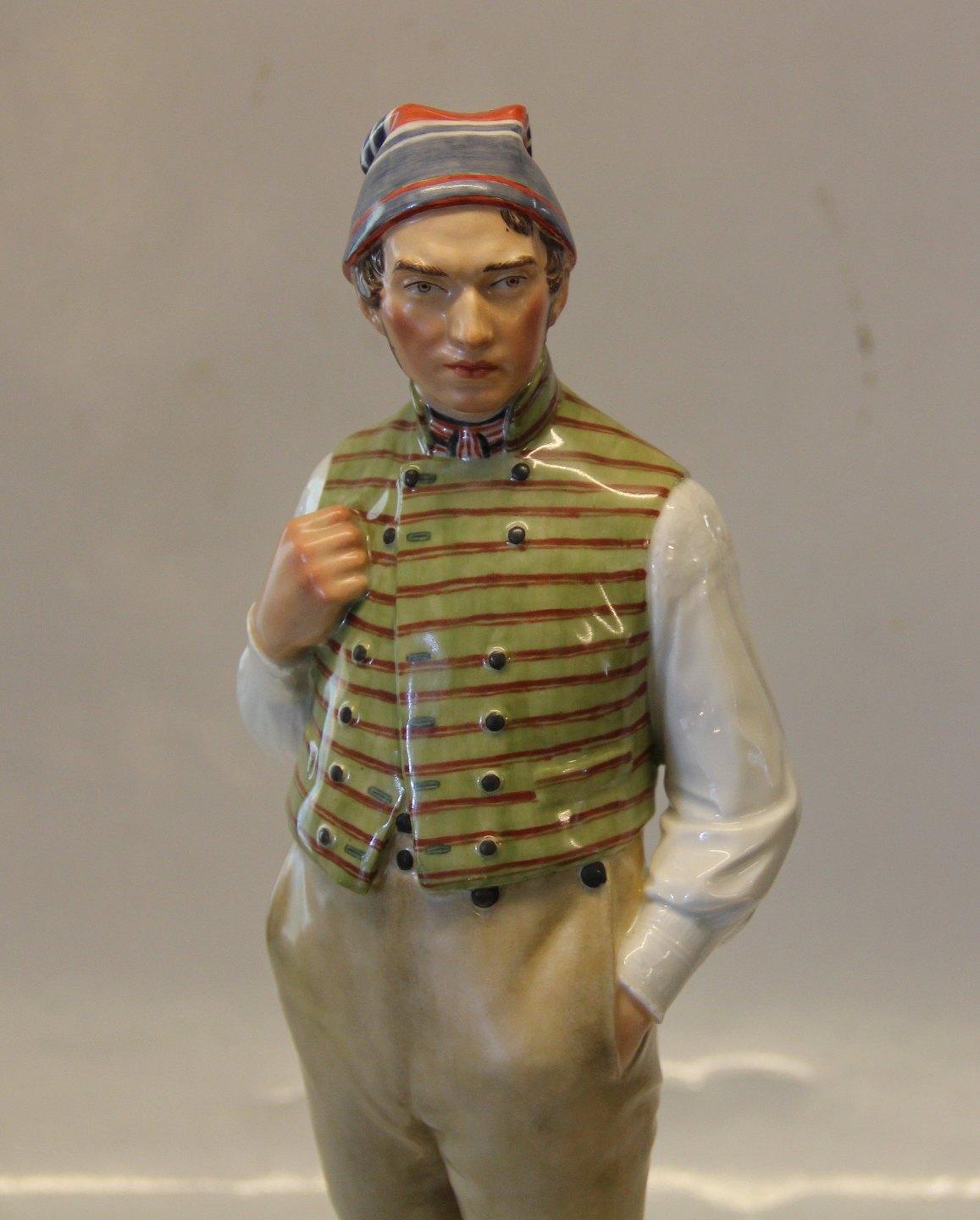 Overglasur egnsfigur fra Royal Copenhagen 12229 Ung mand fra Lolland 33 cm 1. sortering I hel og fin stand. Carl Martin-Hansen (1877-1941)
