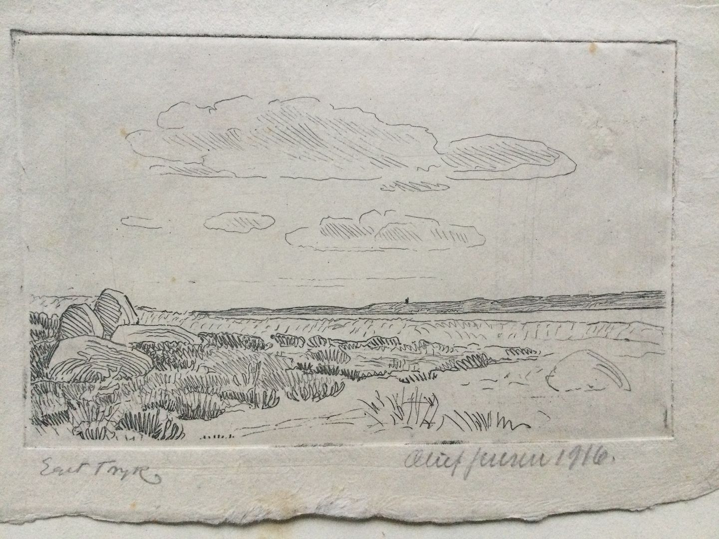 Radering af Oluf Jensen - Landskab med vandløb 1916.