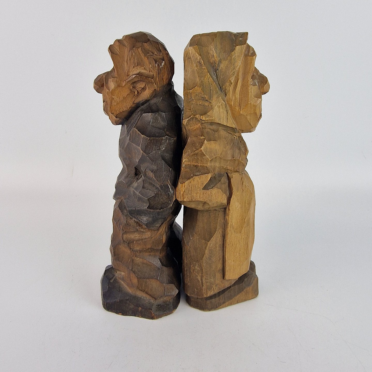 Håndsnittet træfigurer af en kvinde og en mand